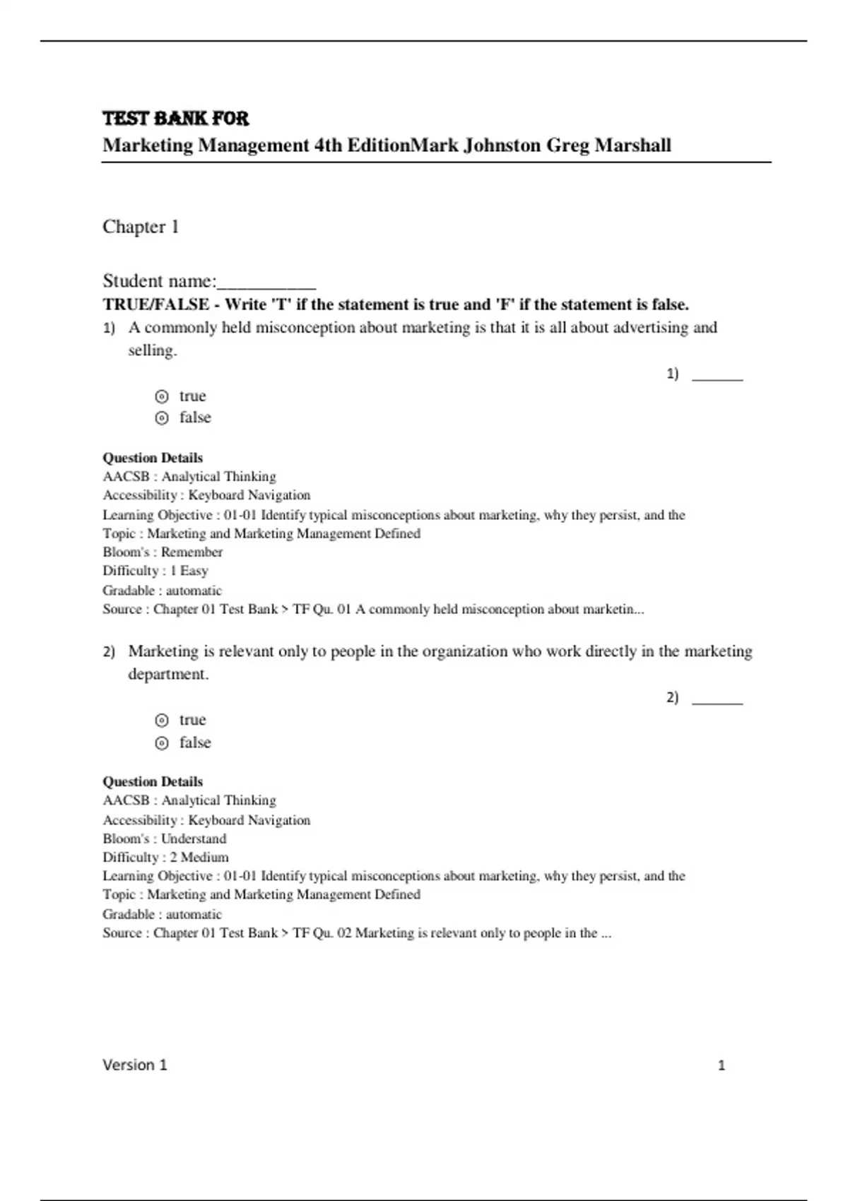 Source : Chapter 01 Test Bank > TF Qu. 03 The American Marketing Association defines m...