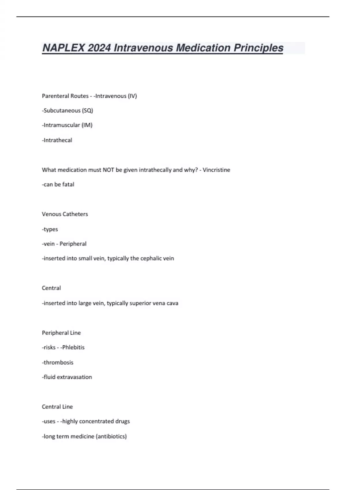 NAPLEX 2024 Intravenous Medication Principles What medication must NOT be given intrathecally and why? .....