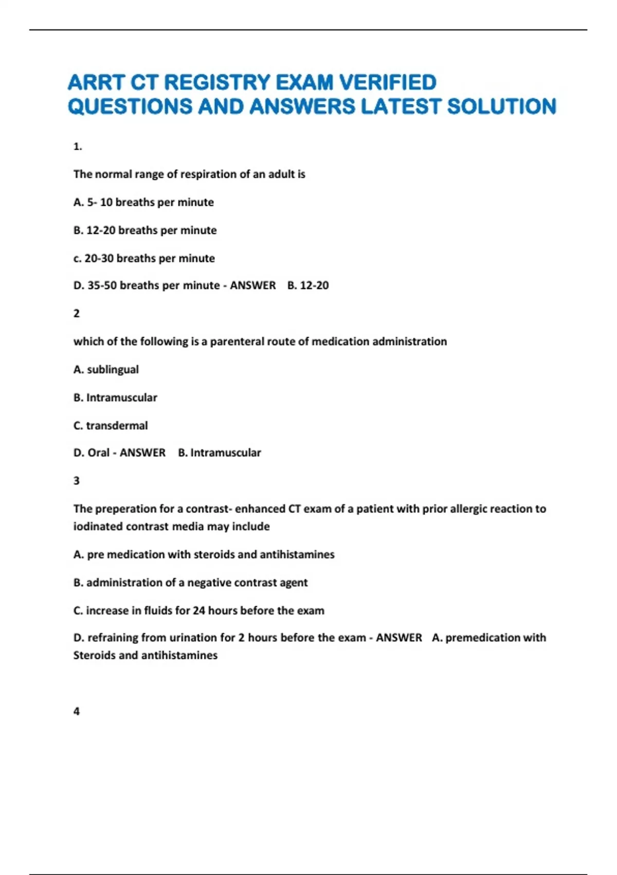 - ARRT CT REGISTRY EXM VRIFIED QUESTIOS AND ANSW