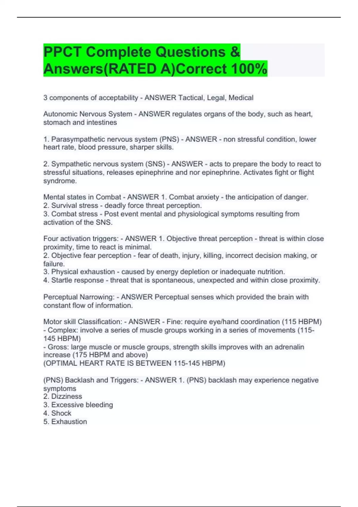 PPCT Complete Questions & Answers(RATED A)Correct 100%