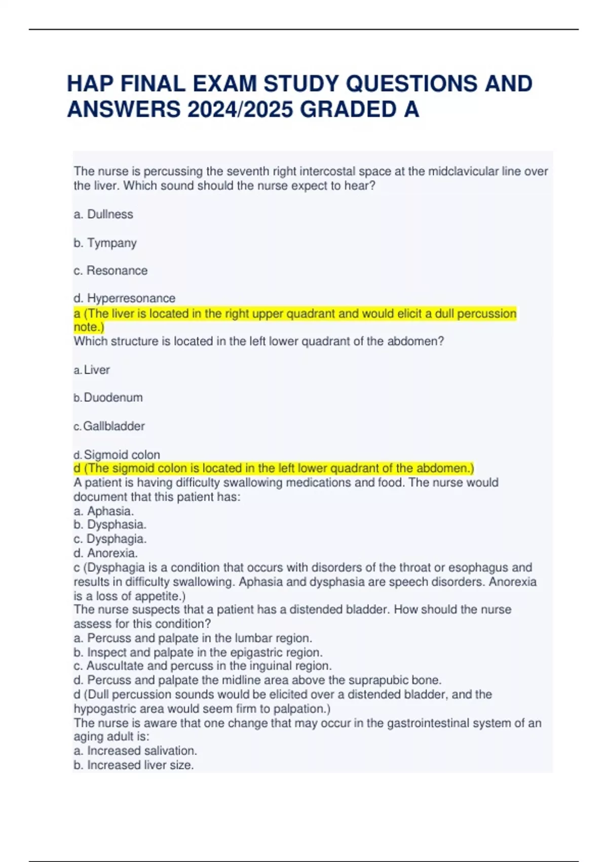 - HAP FIAL EXM STUDY QUESIONS AND ASWERS 2024/20