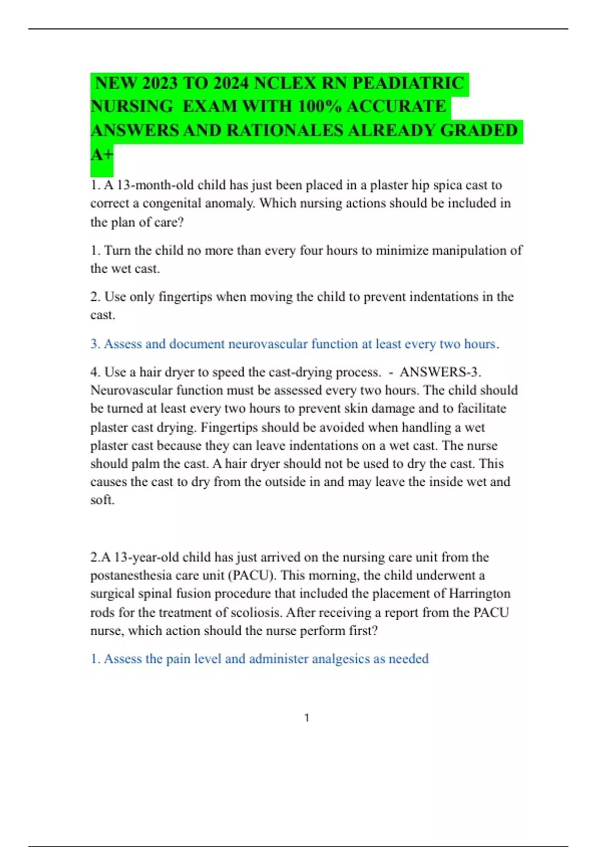 NEW 2023 TO 2024 NCLEX RN PEADIATRIC