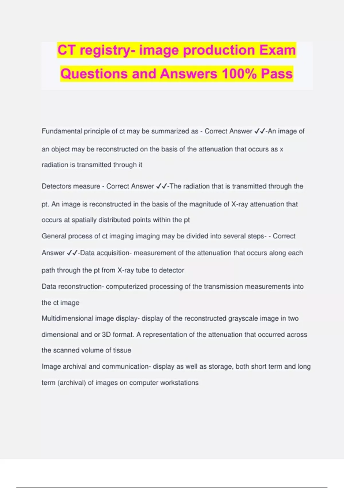 CT registry- image production Exam Questions and Answers 100% Pass