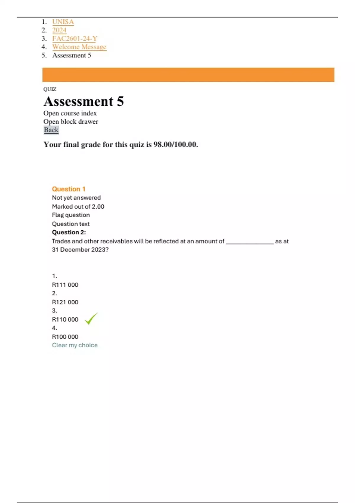 Your final grade for this quiz is 98.00/100.00.