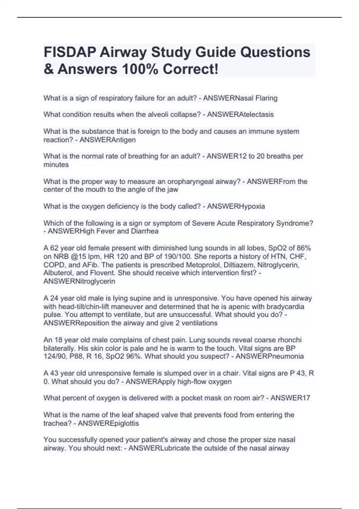 FISDAP Airway Study Guide Questions & Answers 100% Correct!