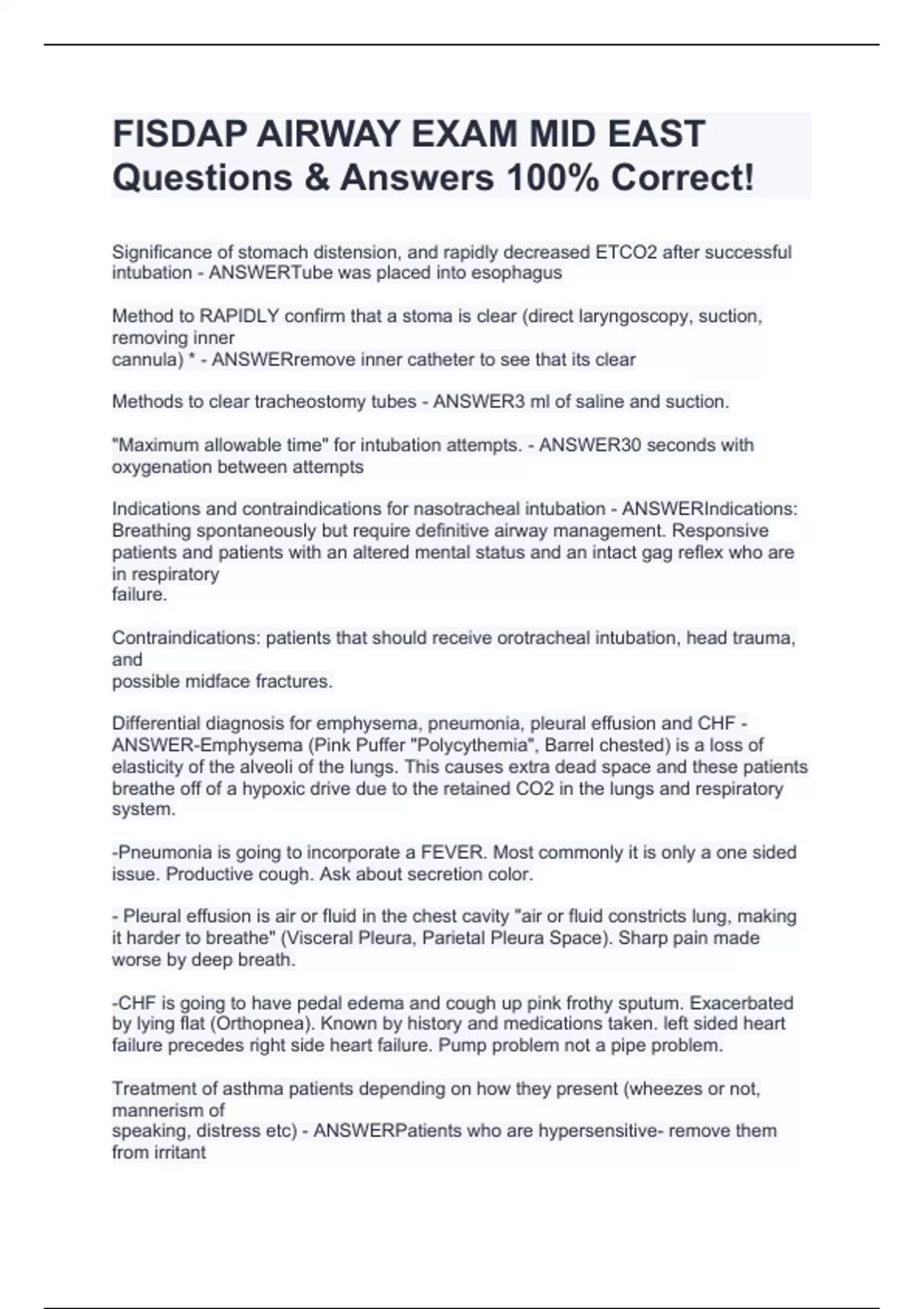 FISDAP AIRWAY EXAM MID EAST Questions & Answers 100% Correct!