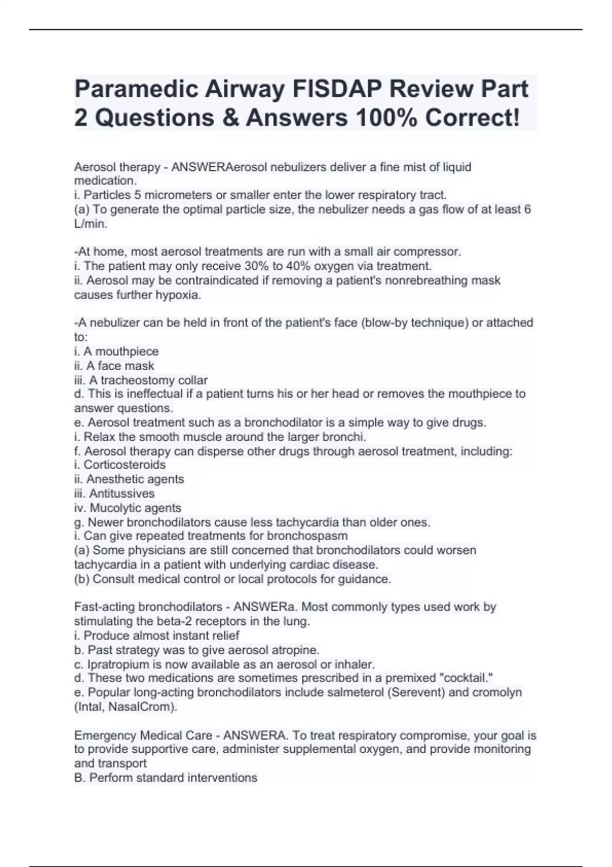Paramedic Airway FISDAP Review Part 2 Questions & Answers 100% Correct!
