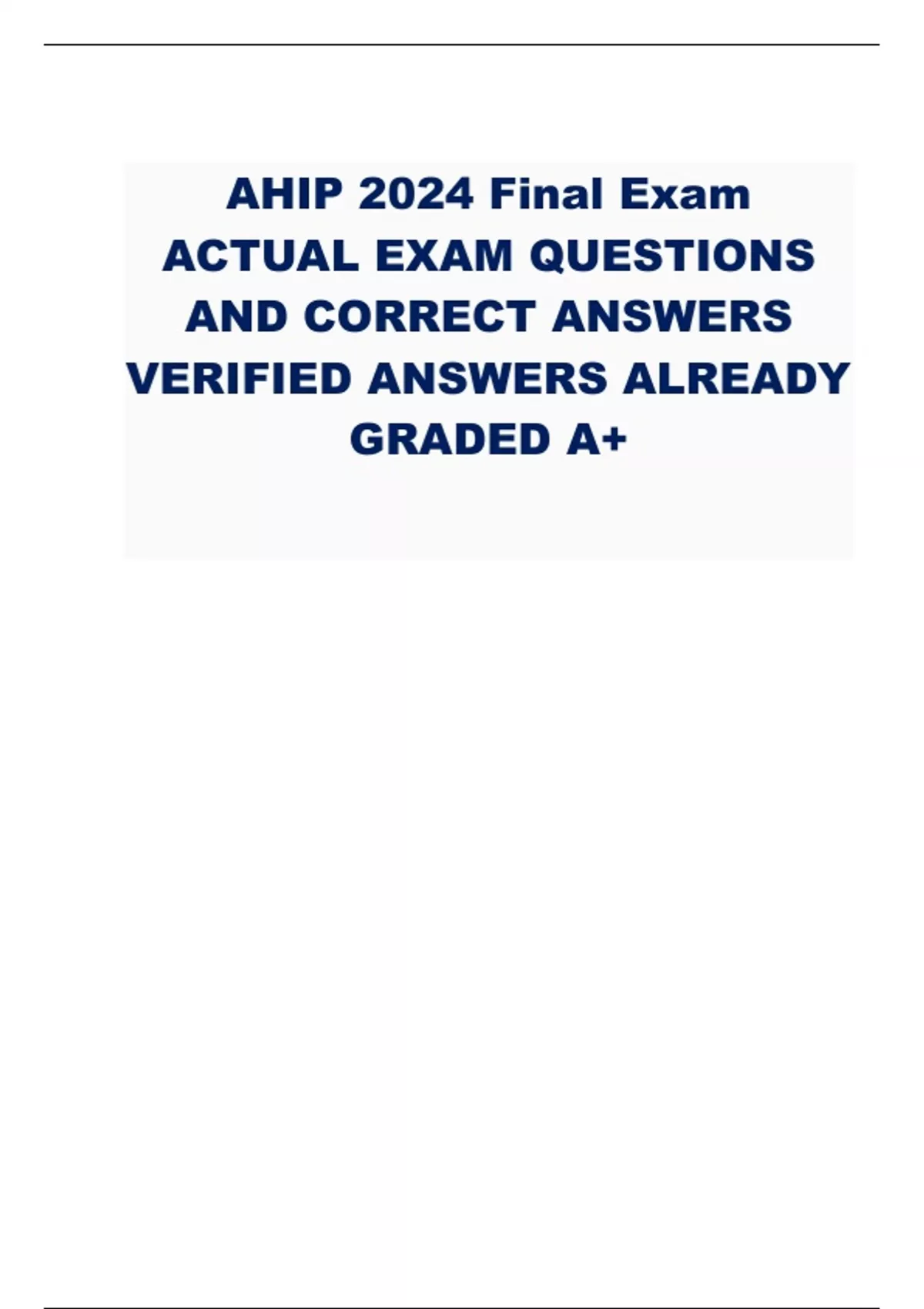 AHIP 2024 Final Exam ACTUAL EXAM QUESTIONS AND CORRECT ANSWERS VERIFIED ANSWERS ALREADY GRADED A+