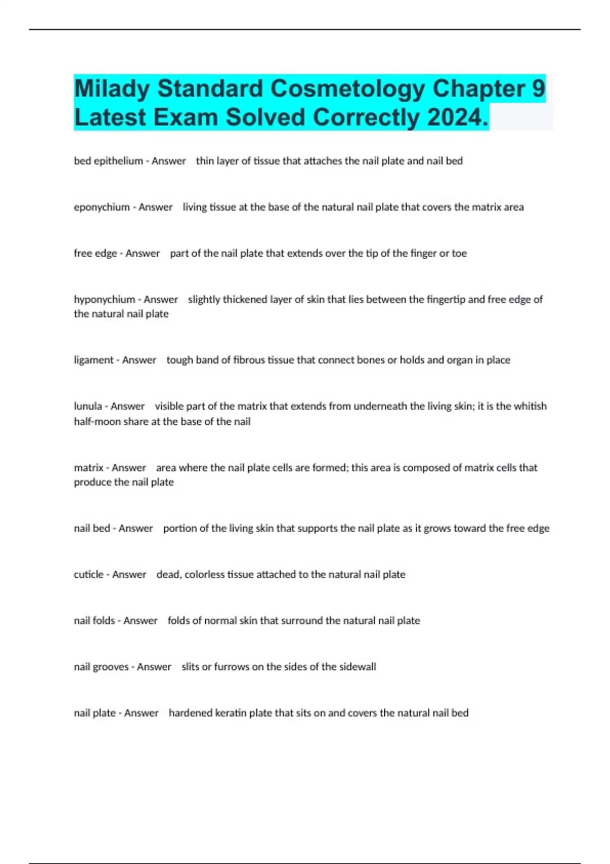 Milady Standard Cosmetology Chapter 9 Latest Exam Solved Correctly 2024.