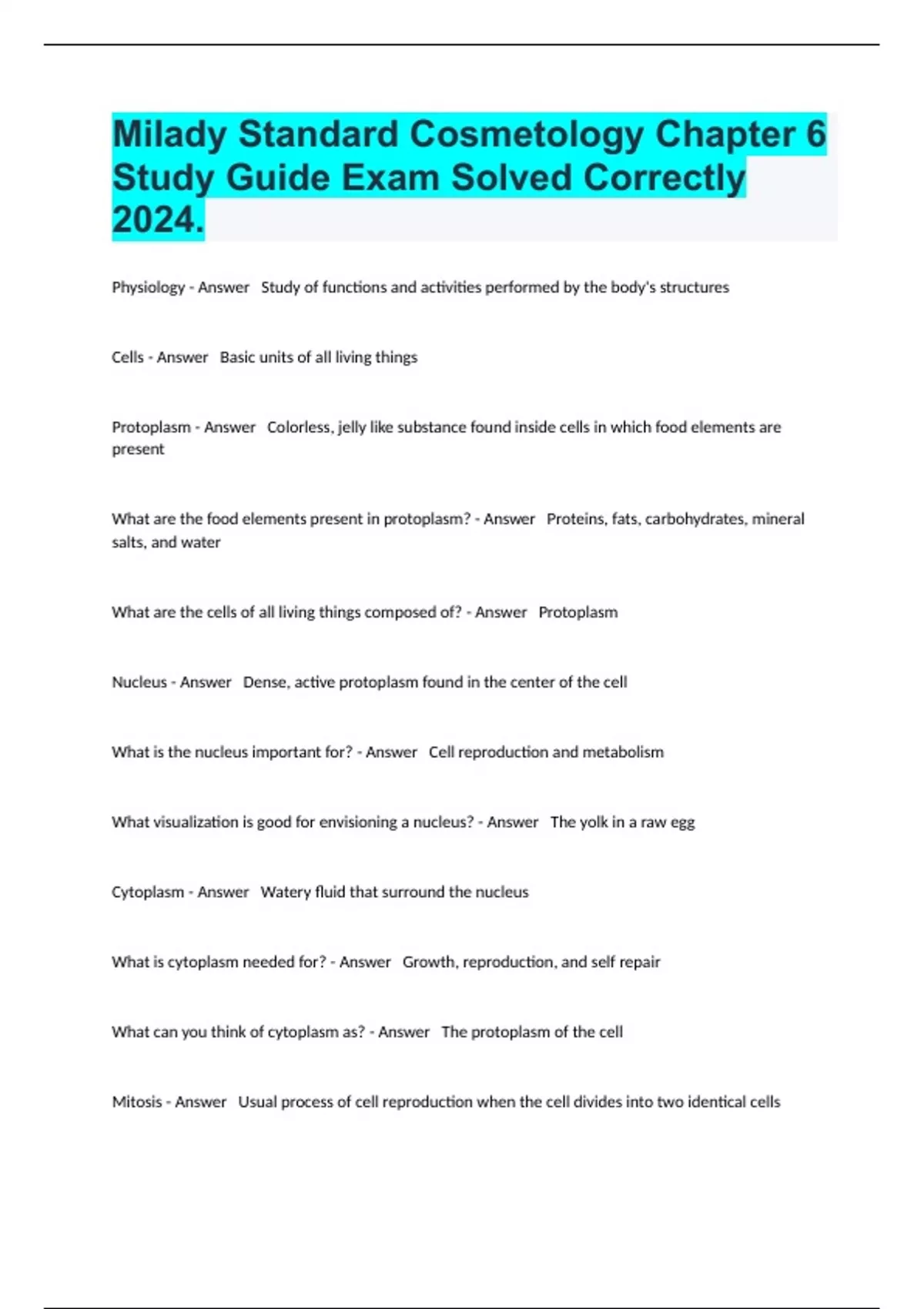 Milady Standard Cosmetology Chapter 6 Study Guide Exam Solved Correctly 2024.