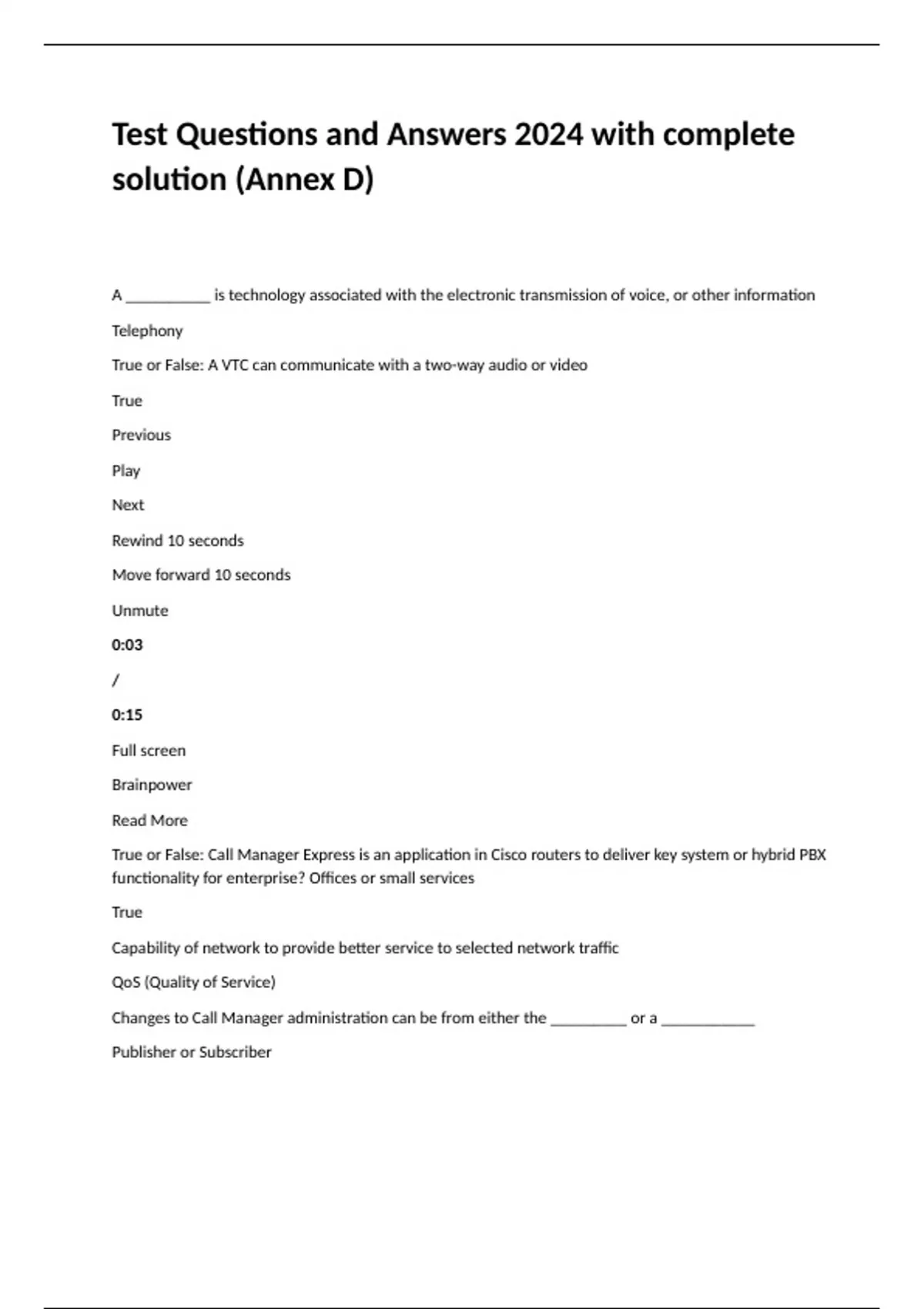 Test Questions and Answers 2024 with complete solution (Annex D)