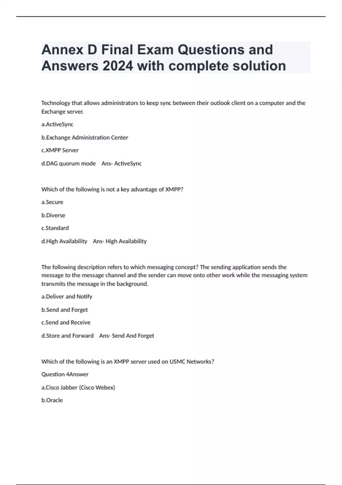 Annex D Final Exam Questions and Answers 2024 with complete solution