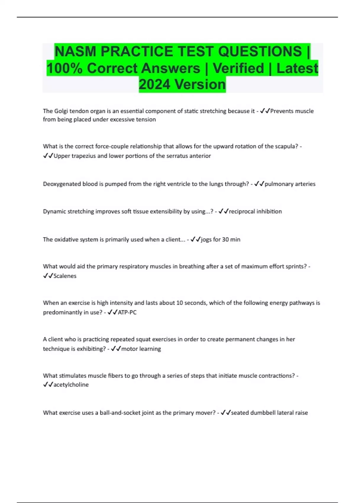 NASM PRACTICE TEST QUESTIONS | 100% Correct Answers | Verified | Latest 2024 Version