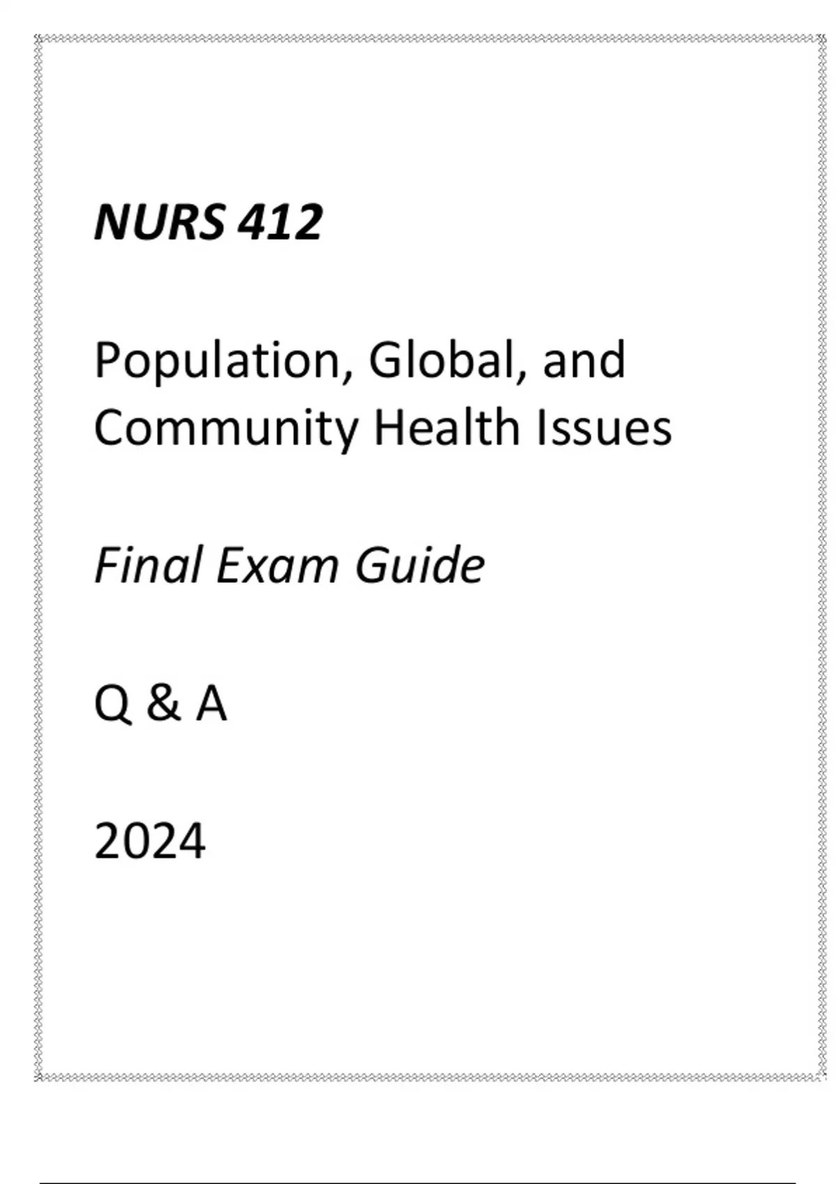 (UMGC) NURS 412 Population, Global, & Community Health Issues Final Exam Guide Q & A 2024(UMGC) NURS 412 Population, Global, & Community Health Issues Final Exam Guide Q & A 2024(UMGC) NURS 412 Population, Global, & Community Health Issues Final Exam Guide Q & A 2024