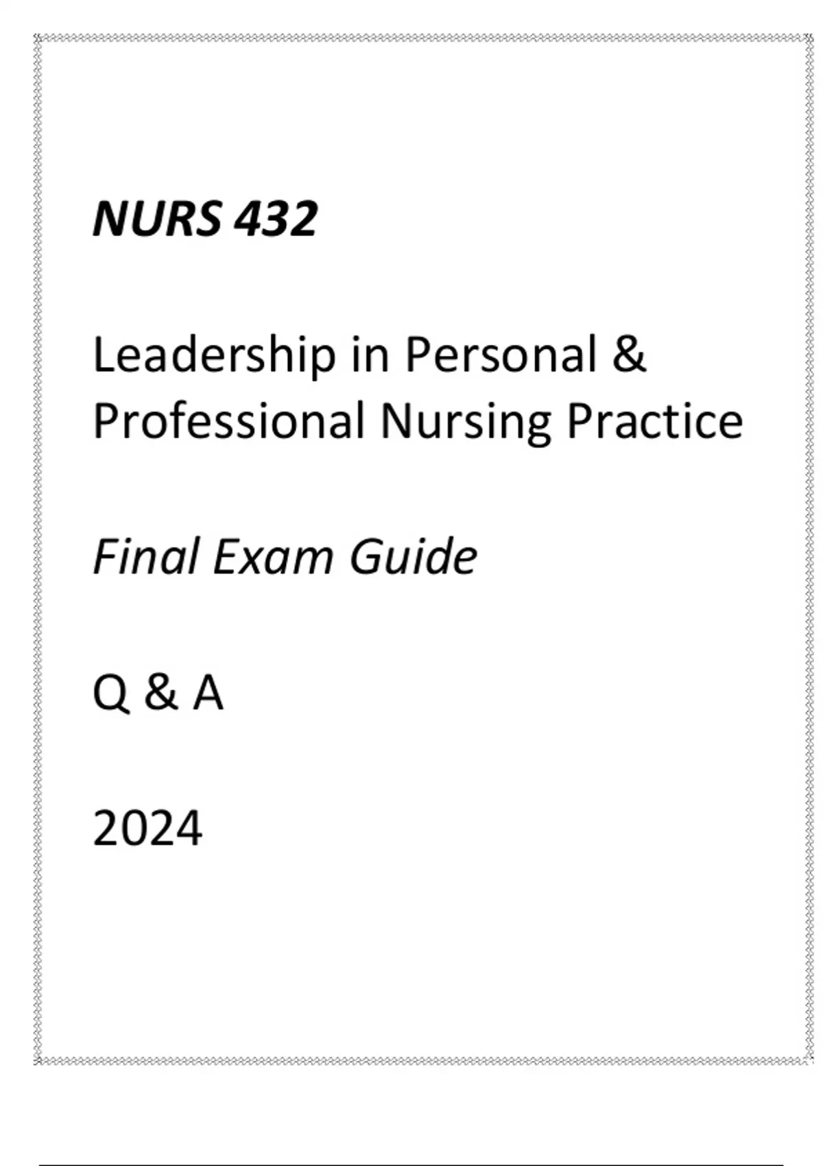 (UMGC) NURS 432 Leadership in Personal & Professional Nursing Practice Final Exam Guide (UMGC) NURS 432 Leadership in Personal & Professional Nursing Practice Final(UMGC) NURS 432 Leadership in Personal & Professional Nursing Practice Final Exam Guide xam Guide