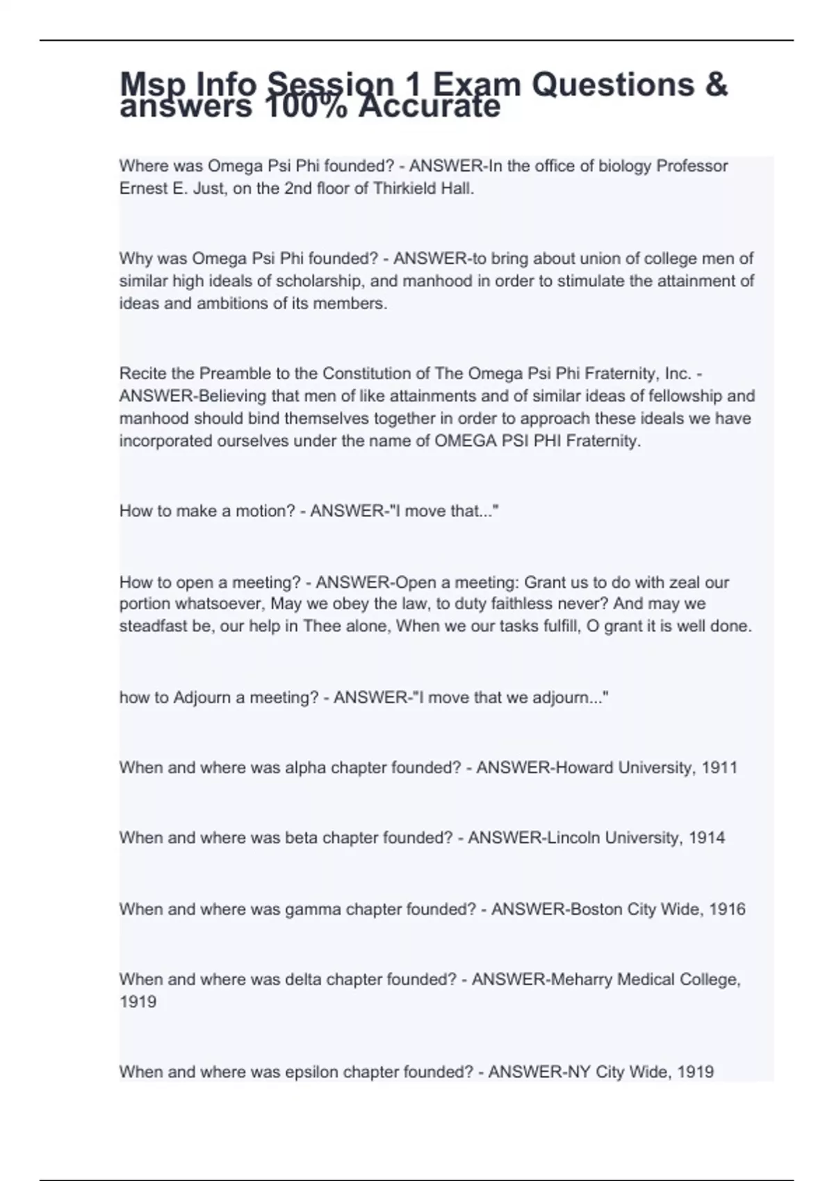 Why was Omega Psi Phi founded? - ANSWER-to bring about union of college men of similar high ideals of scholarship, and manhood in order to stimulate the attainment of ideas and ambitions of its members.