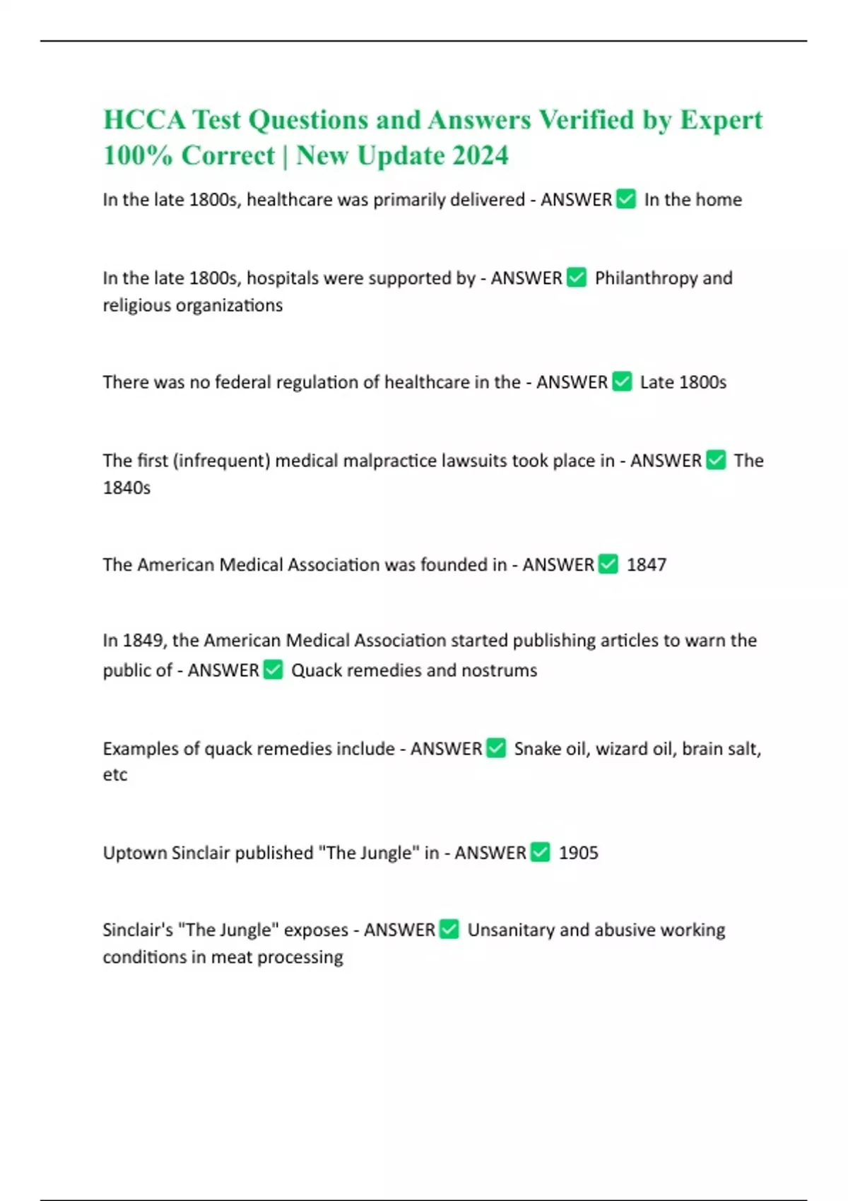 HCCA Test Questions and Answers Verified by Expert 100% Correct | New Update 2024