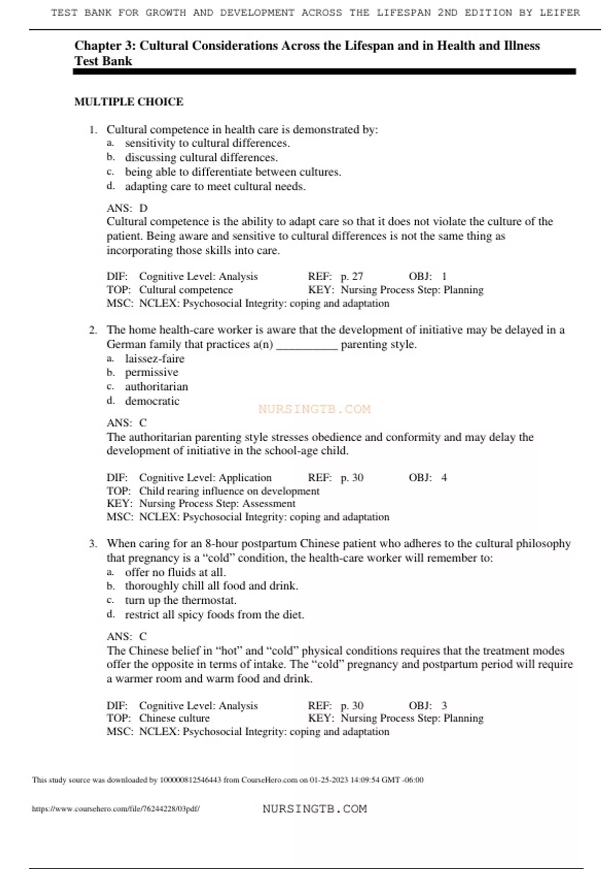 , TEST BANK FOR GROWTH AND DEVELOPMENT ACROSS THE LIFESPAN 2ND EDITION BY LEIFER