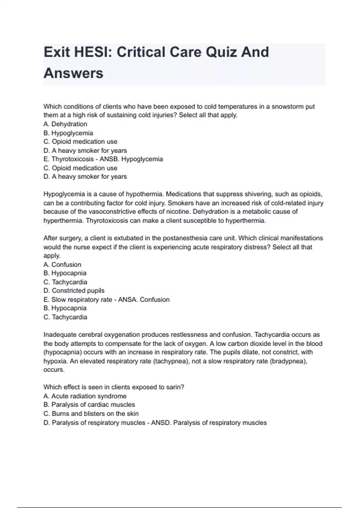 Exit HESI: Critical Care Quiz And Answers already graded A+ 2024/2025