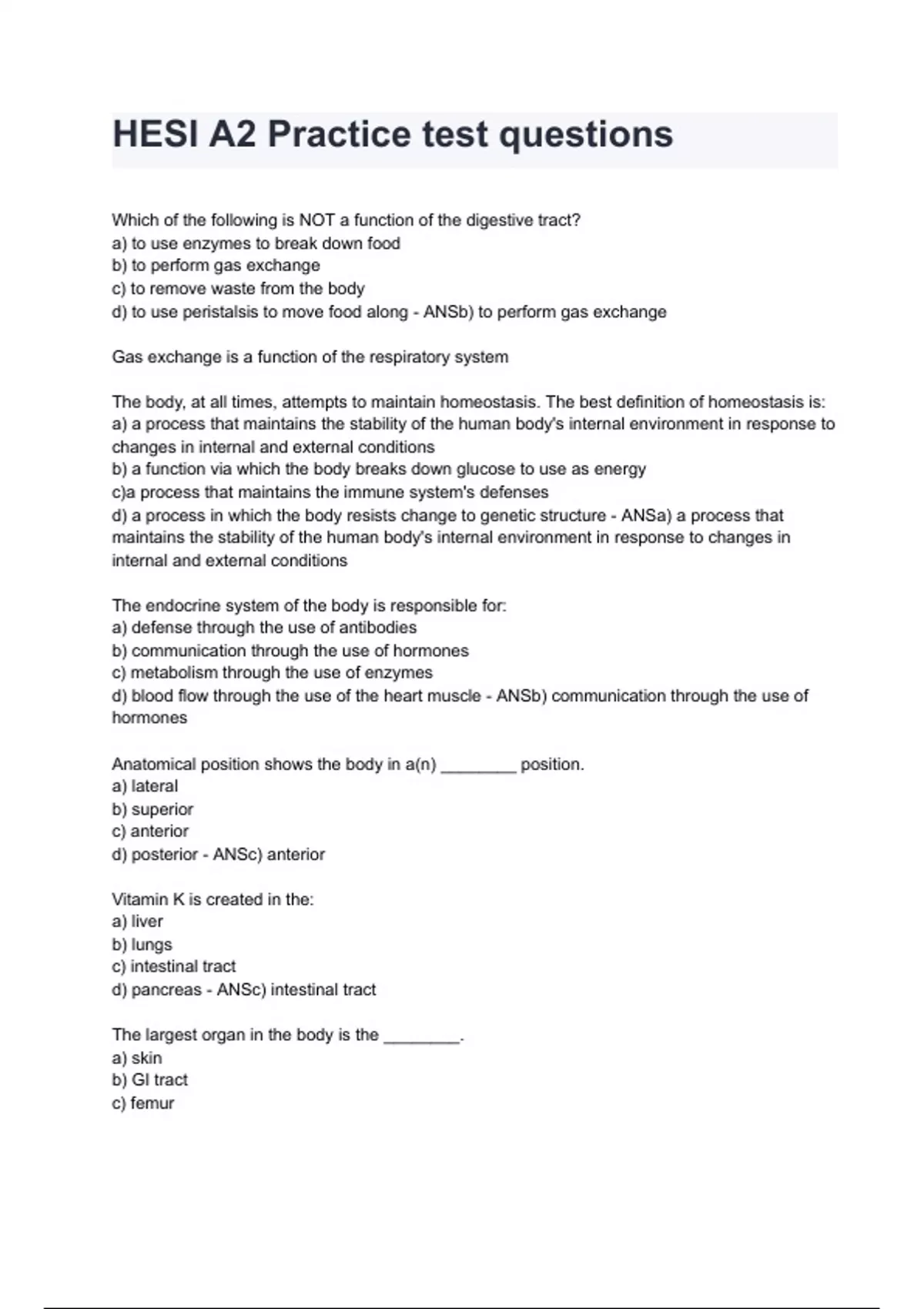 d) to use peristalsis to move food along - ANSb) to perform gas exchange
