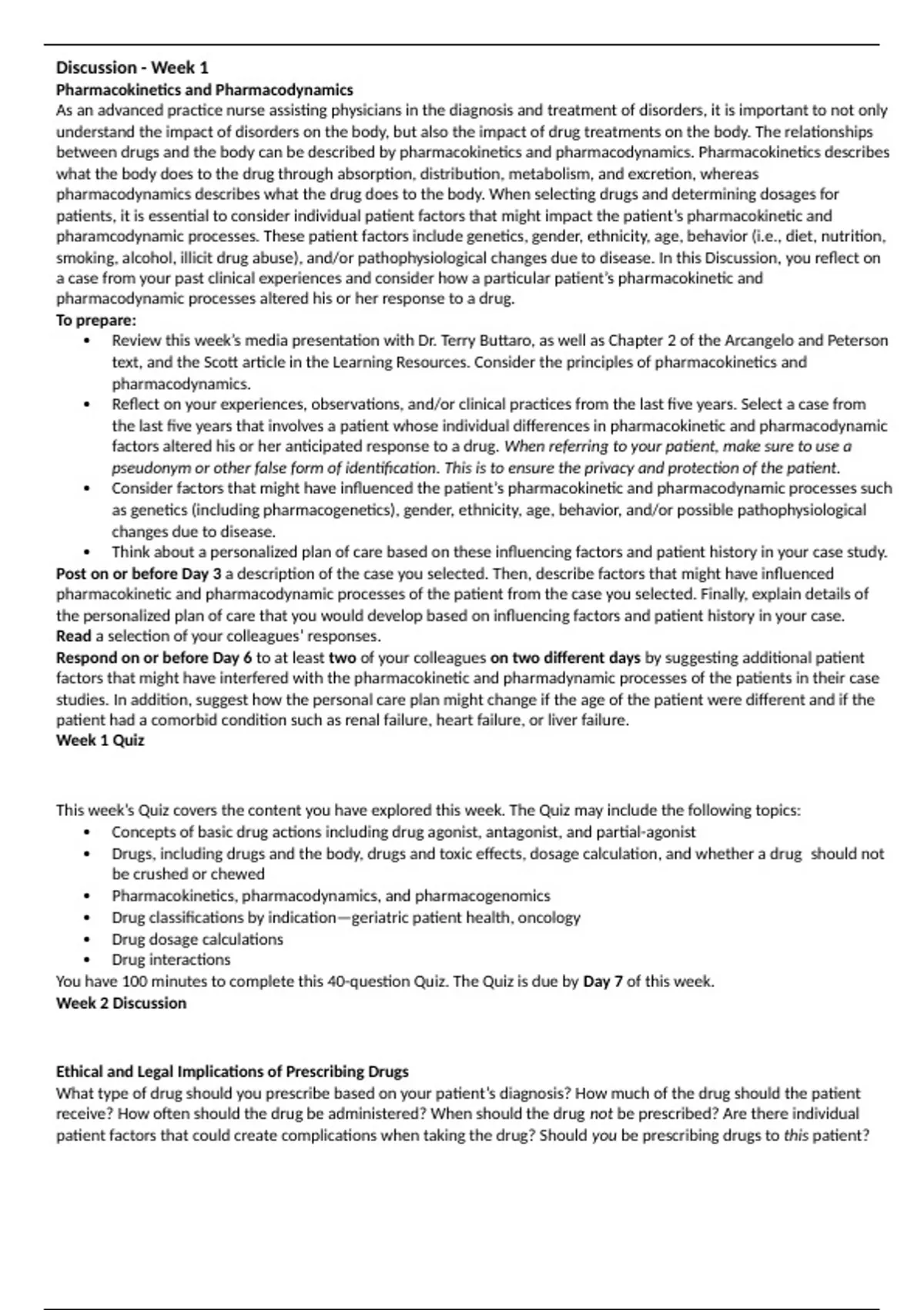 Discussion - Week 1 Pharmacokinetics and Pharmacodynamics