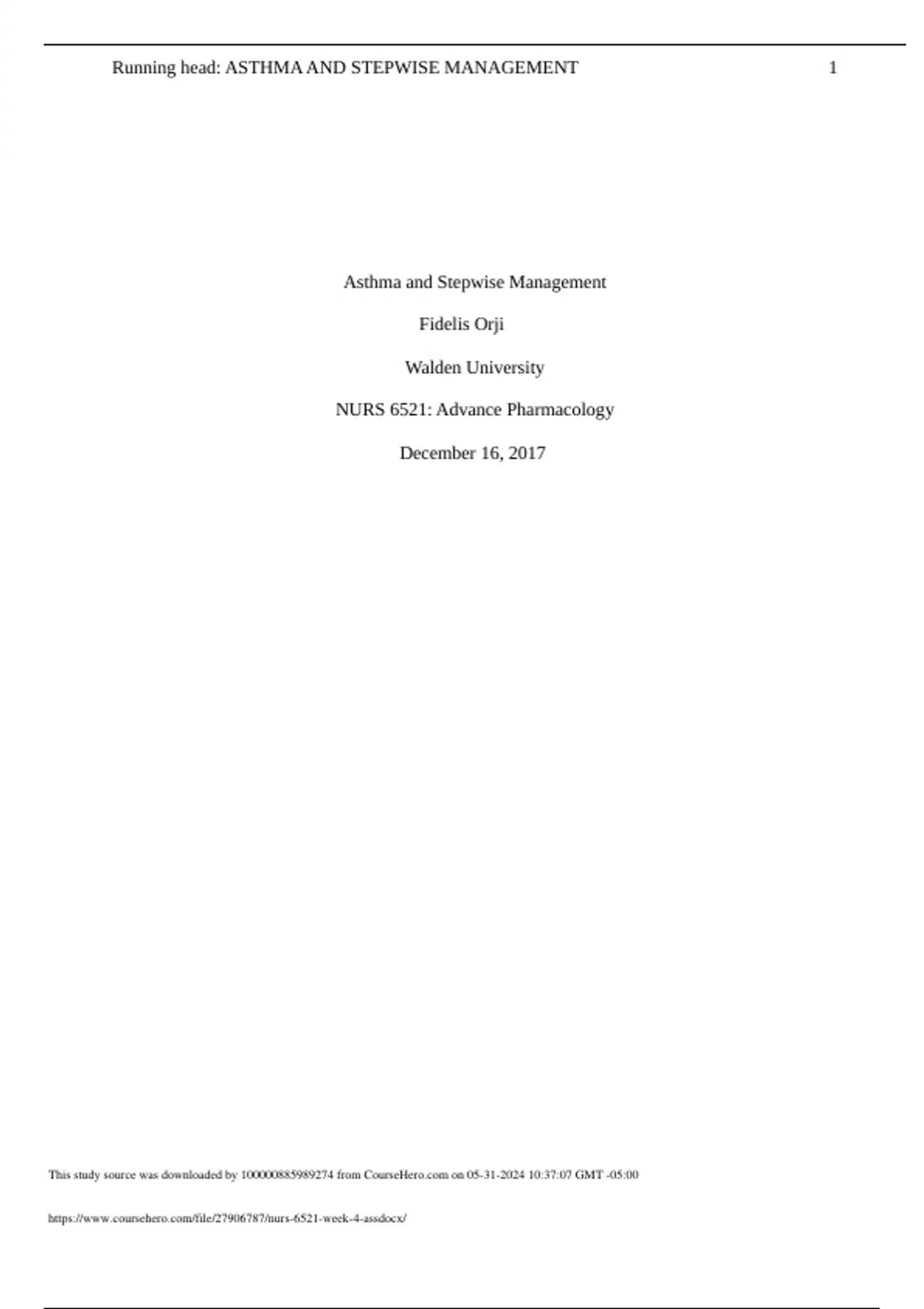 NURS 6521: Advance Pharmacolog ASTHMA AND STEPWISE MANAGEMENT