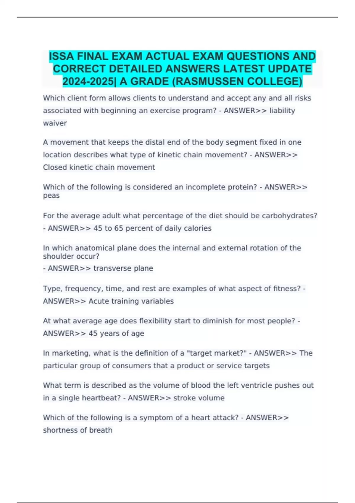 ISSA FINAL EXAM ACTUAL EXAM QUESTIONS AND CORRECT DETAILED ANSWERS LATEST UPDATE | A GRADE (RASMUSSEN COLLEGE)