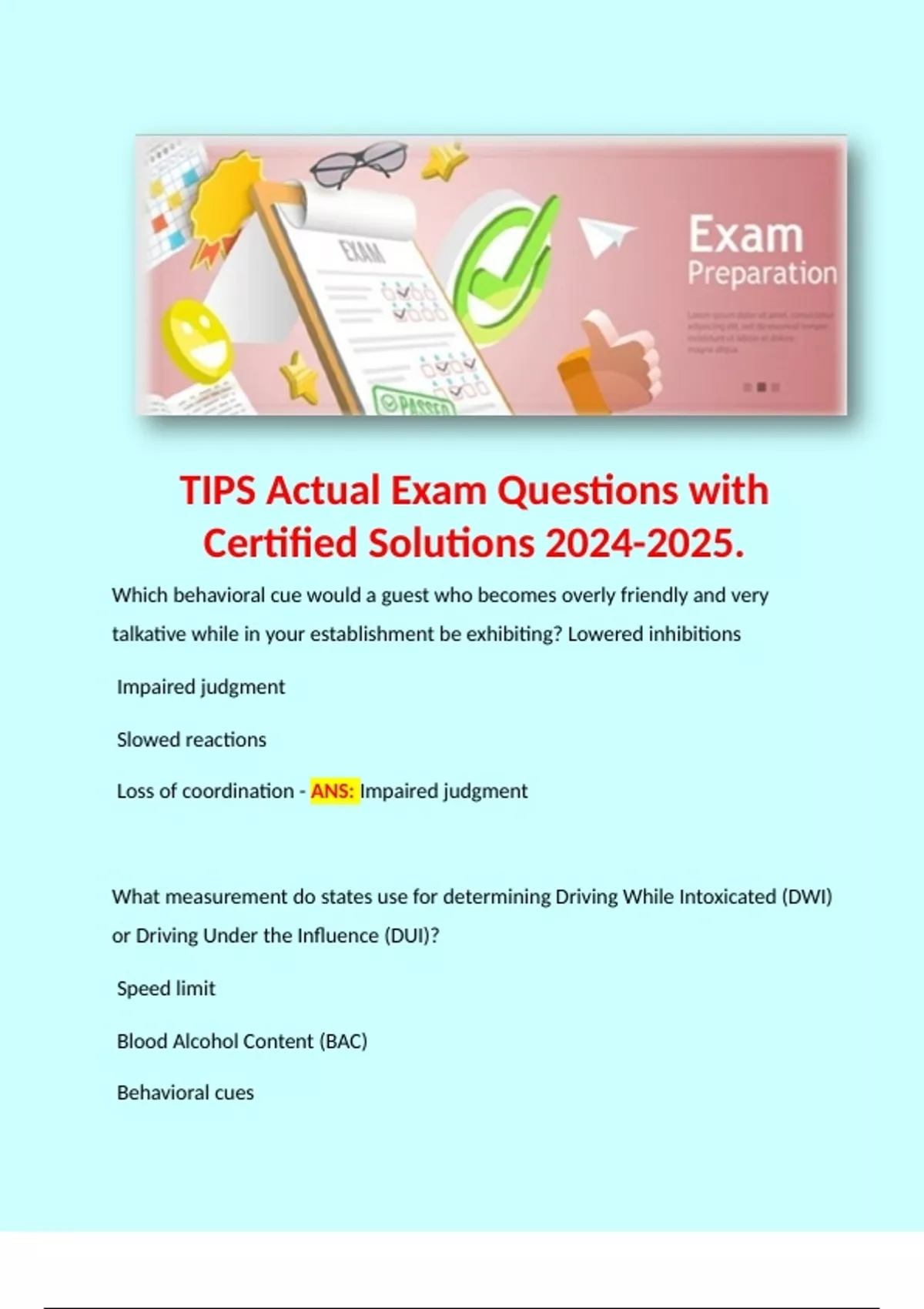 Loss of coordination - ANS: Impaired judgment