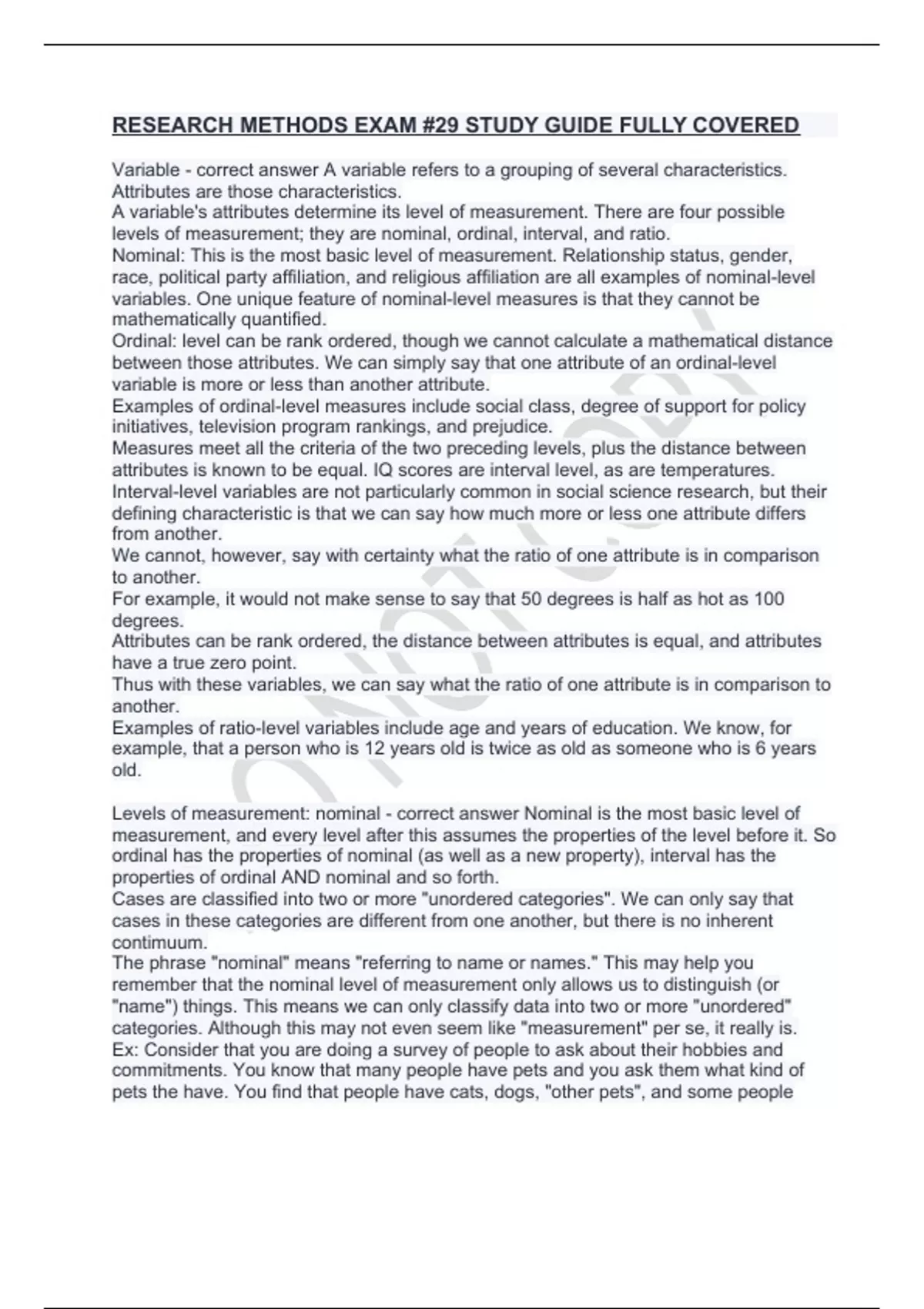 RESEARCH METHODS EXAM #29 STUDY GUIDE FULLY COVERED