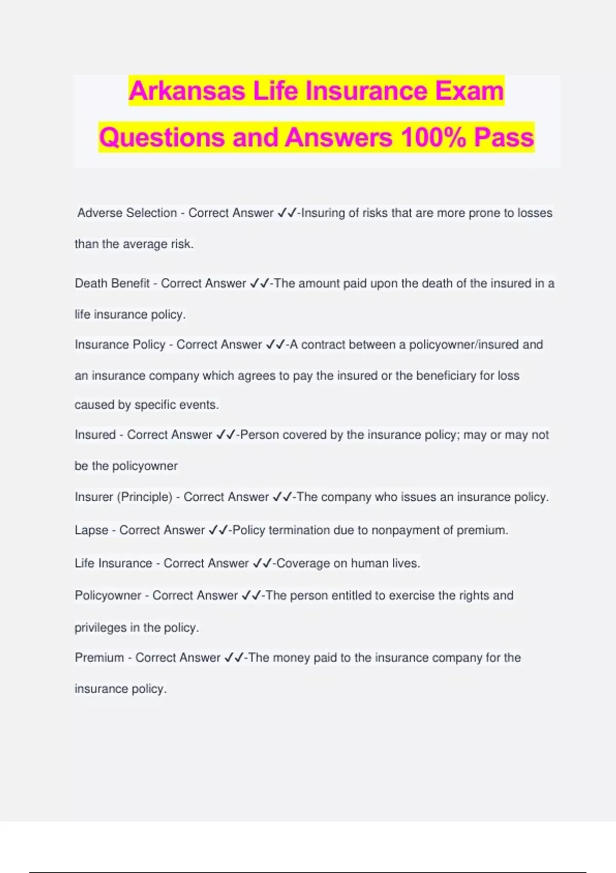 Arkansas Life Insurance Exam Questions and Answers 100% Pass