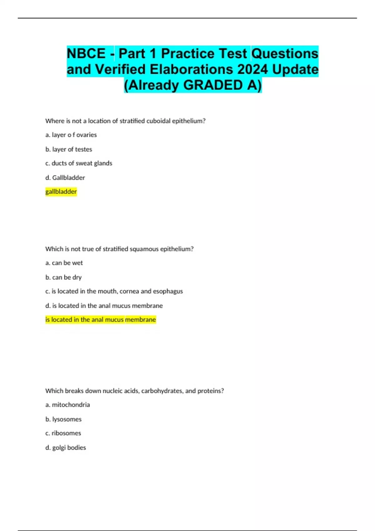 NBCE - Part 1 Practice Test Questions and Verified Elaborations 2024 Update (Already GRADED A)