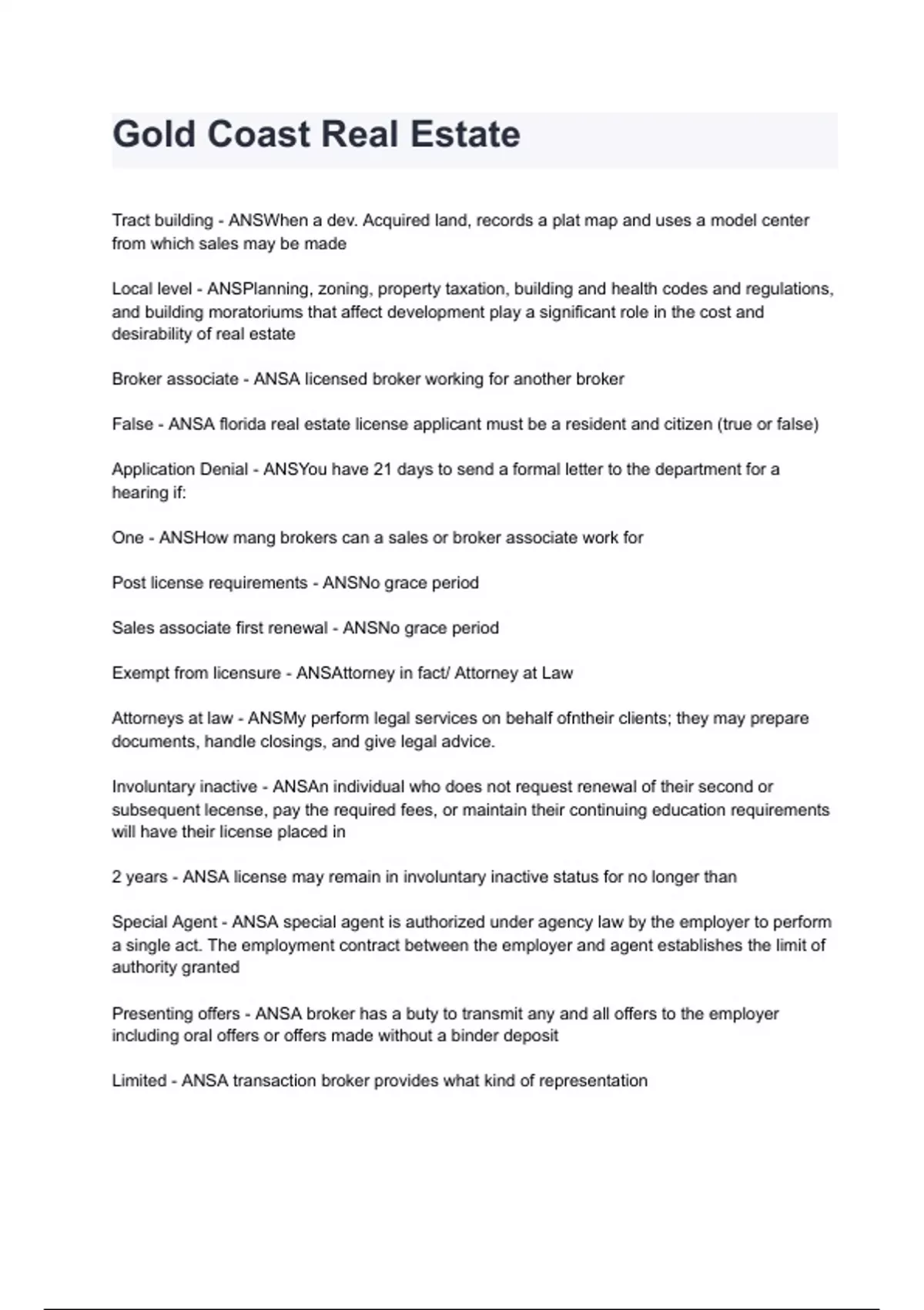 Gold Coast Real Estate questions and answers already graded A+ 2024/2025
