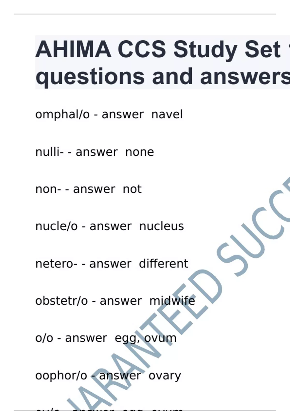 AHIMA CCS Study Set 1 questions and answers