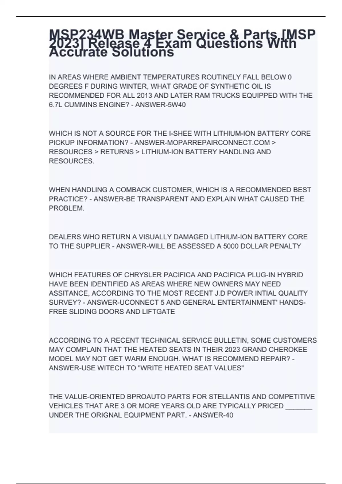 MSP234WB Master Service & Parts [MSP 2023] Release 4 Exam Questions With Accurate Solutions