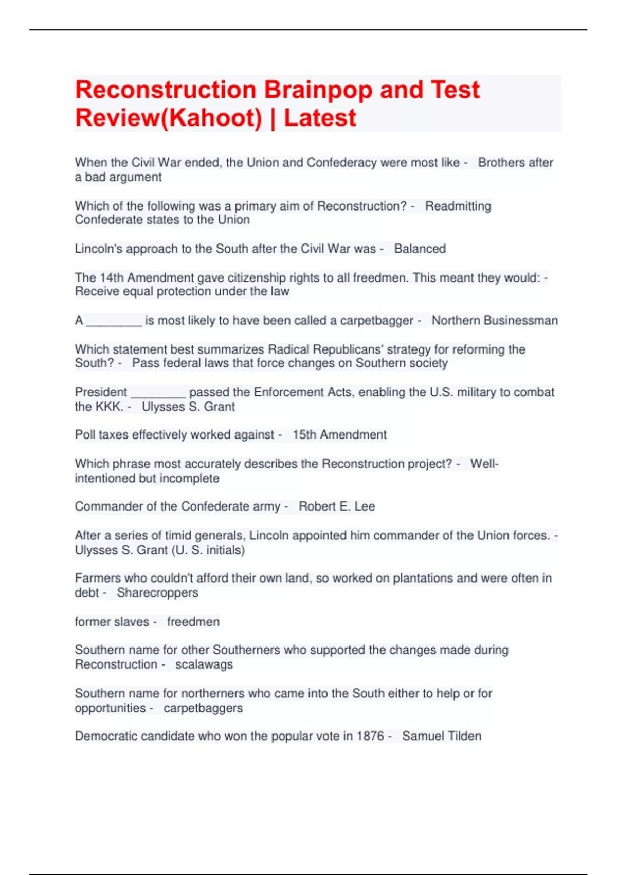 Reconstruction Brainpop and Test Review(Kahoot) | Latest