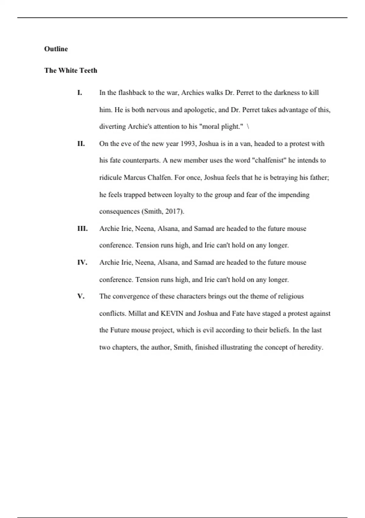 De Anza College the White Teeth Novel Analysis Discuss the significance of the completion of the flashback scene between Archie and Dr. Sick at the end of the novel. Discuss the thematic significance and/or meaning of the confluence and convergence of three organizations--KEVIN, FATE, and the Witnesses--on Marcus Chalfen's New Year's Eve presentation of FutureMouse. What do the groups have to do with the event and vice-versa? What do you think is Zadie Smith's view on such matters as evident in her portrayal of them? Your response should be analytical in approach. Establish your main claim/idea/thesis/position with one representative example, a passage from the novel. Develop your paragraphs with evidence and explanations. An effective response will have an introduction, body, and conclusion. You do not need to assume that your reader has not read the novel. In other words, you do not need a summary with a focus in your response.