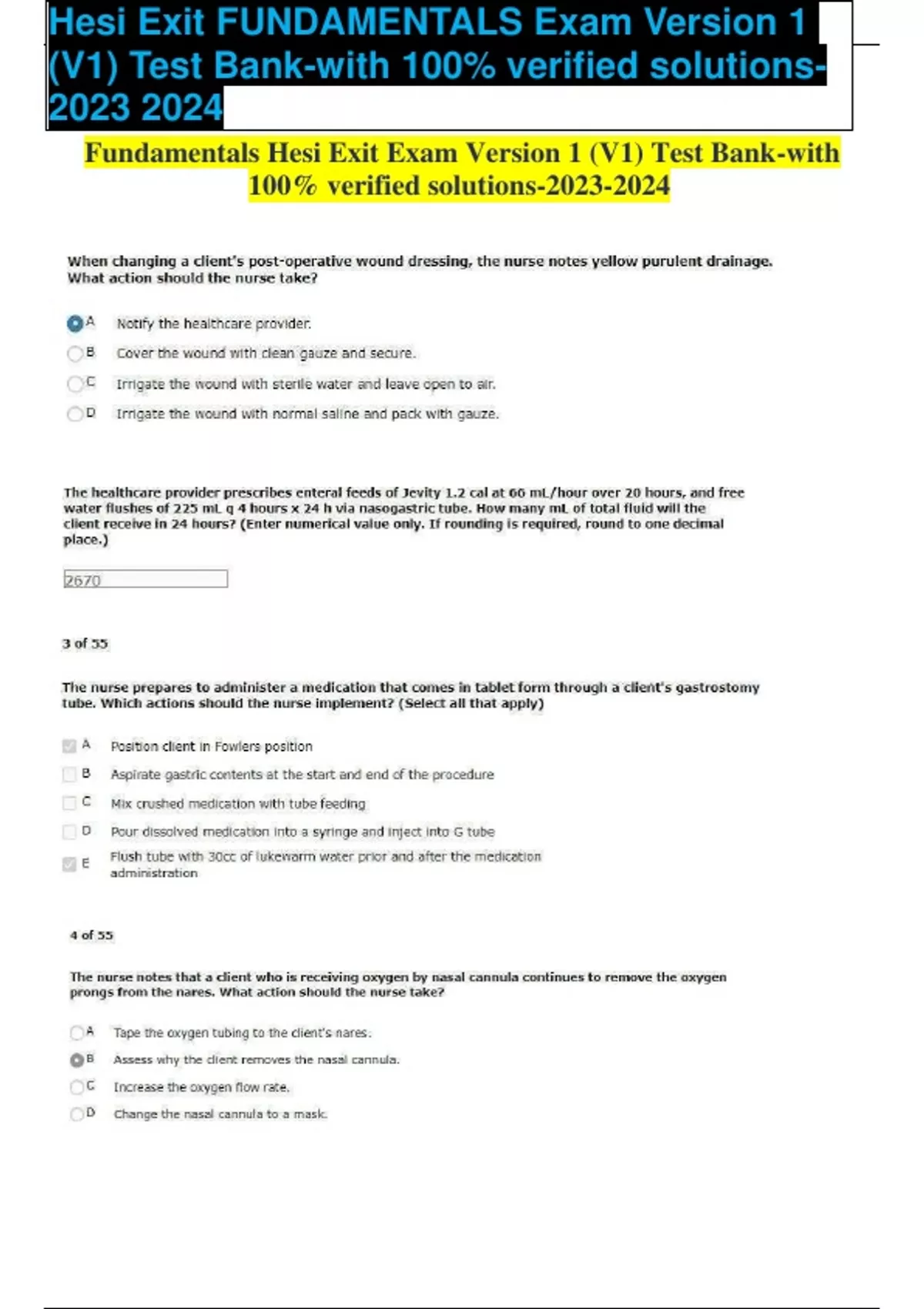 Hesi Exit FUNDAMENTALS Exam Version 1 (V1) Test Bank-with 100% verified solutions-