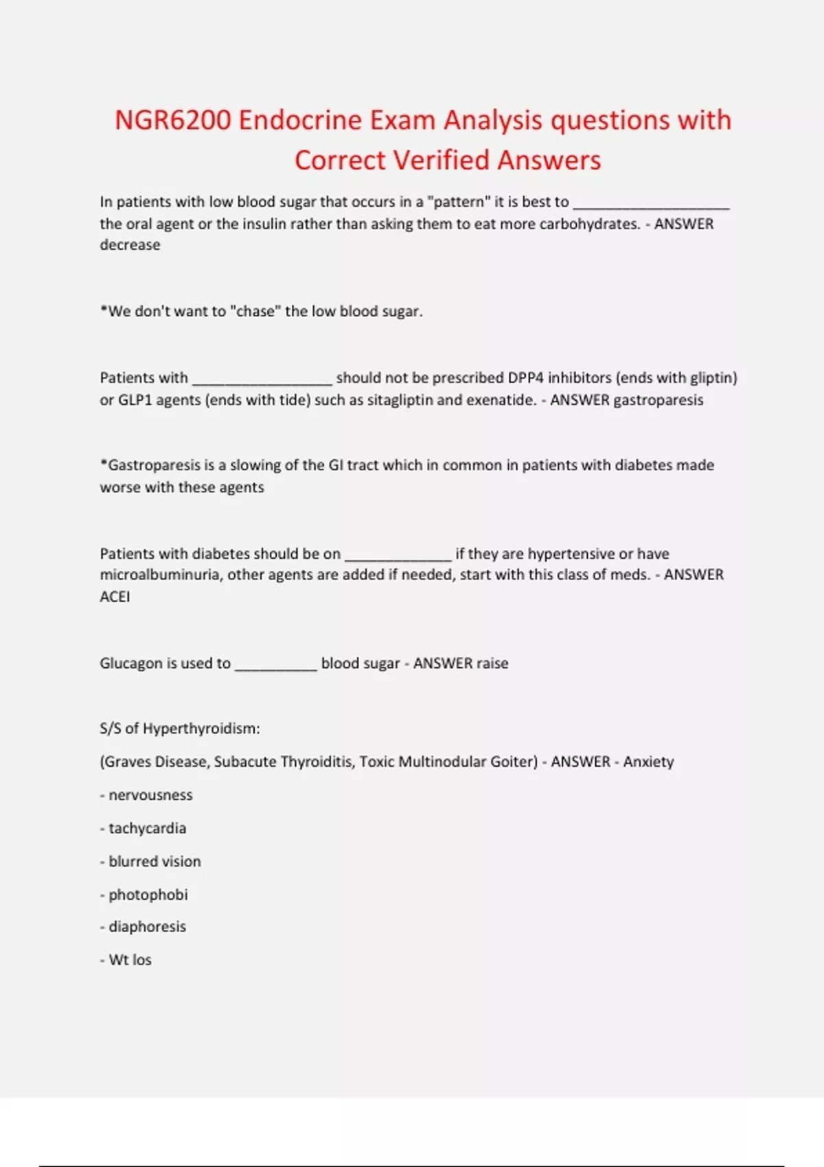 NGR6200 Endocrine Exam Analysis questions with Correct Verified Answers