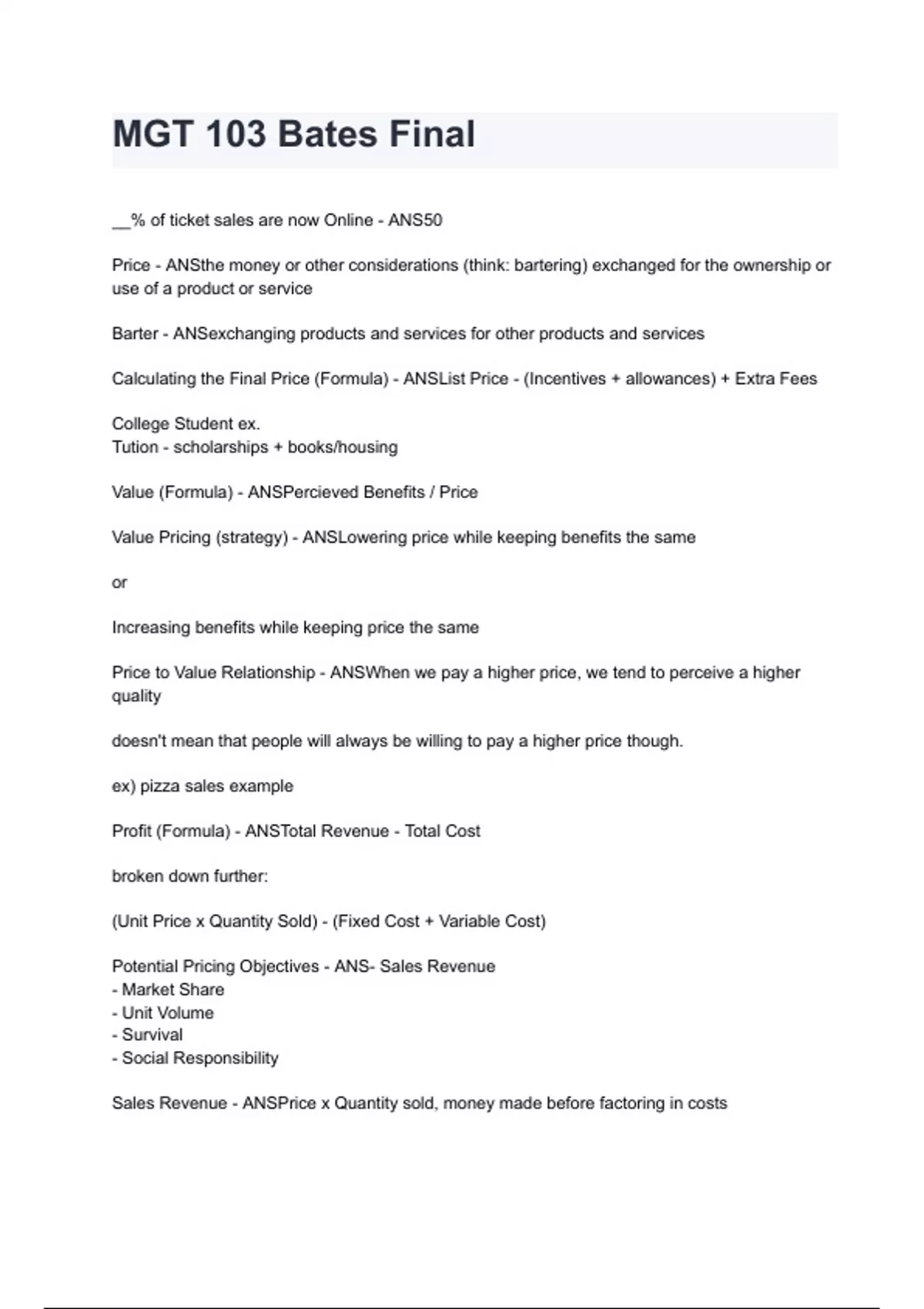 Price - ANSthe money or other considerations (think: bartering) exchanged for the ownership or