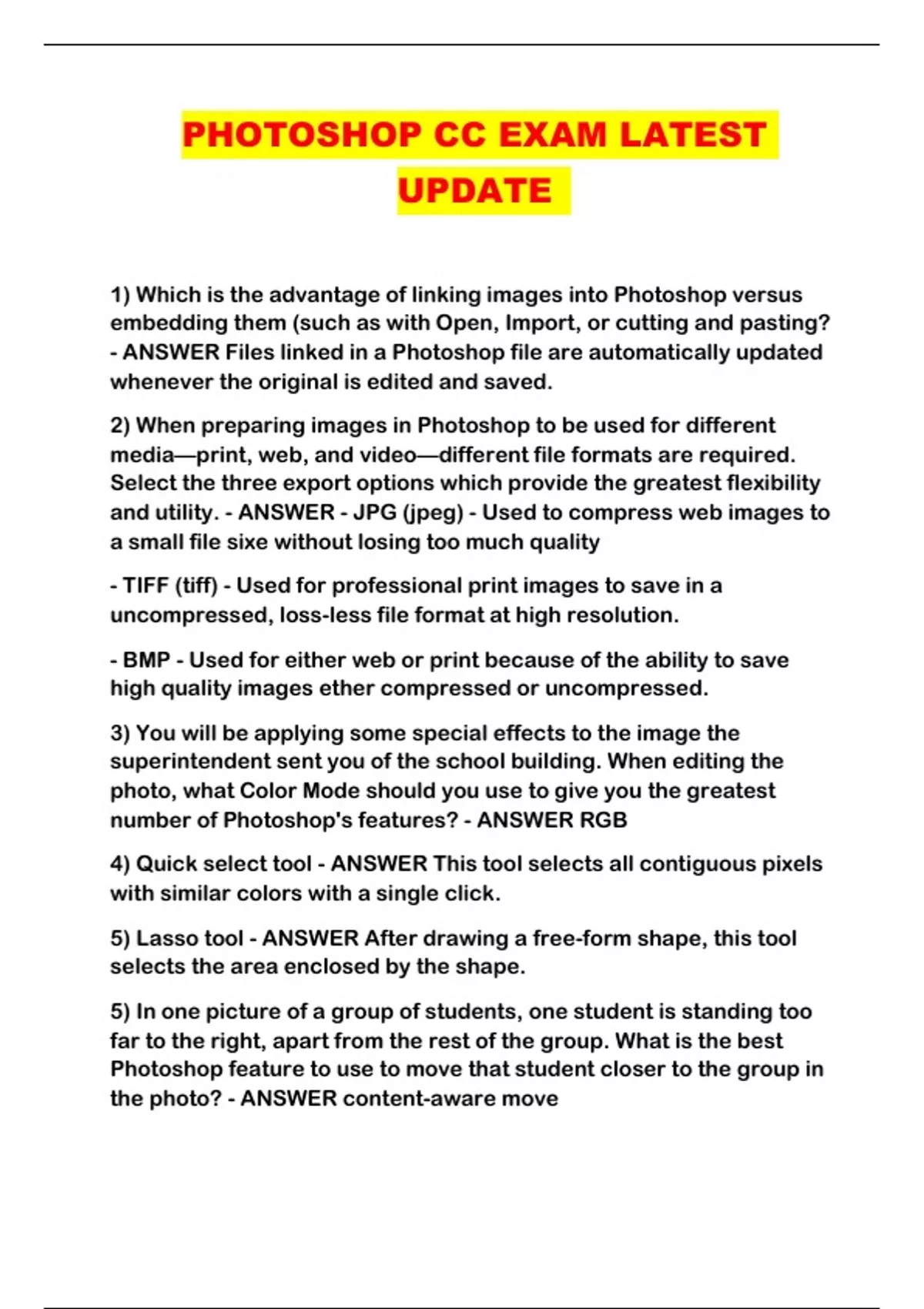 PHOTOSHOP CC EXAM LATEST UPDATE ...