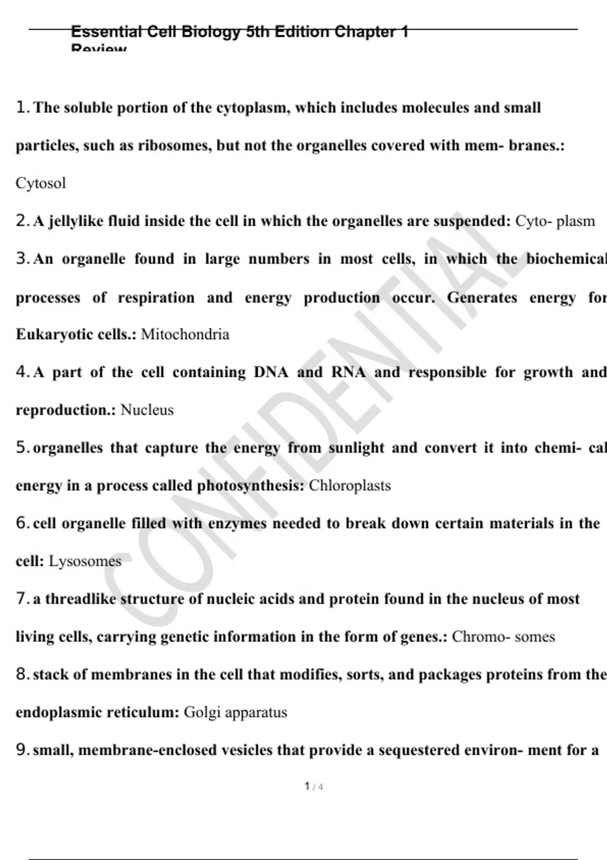 Essential Cell Biology 5th Edition Chapter 1 Review_ complete solution