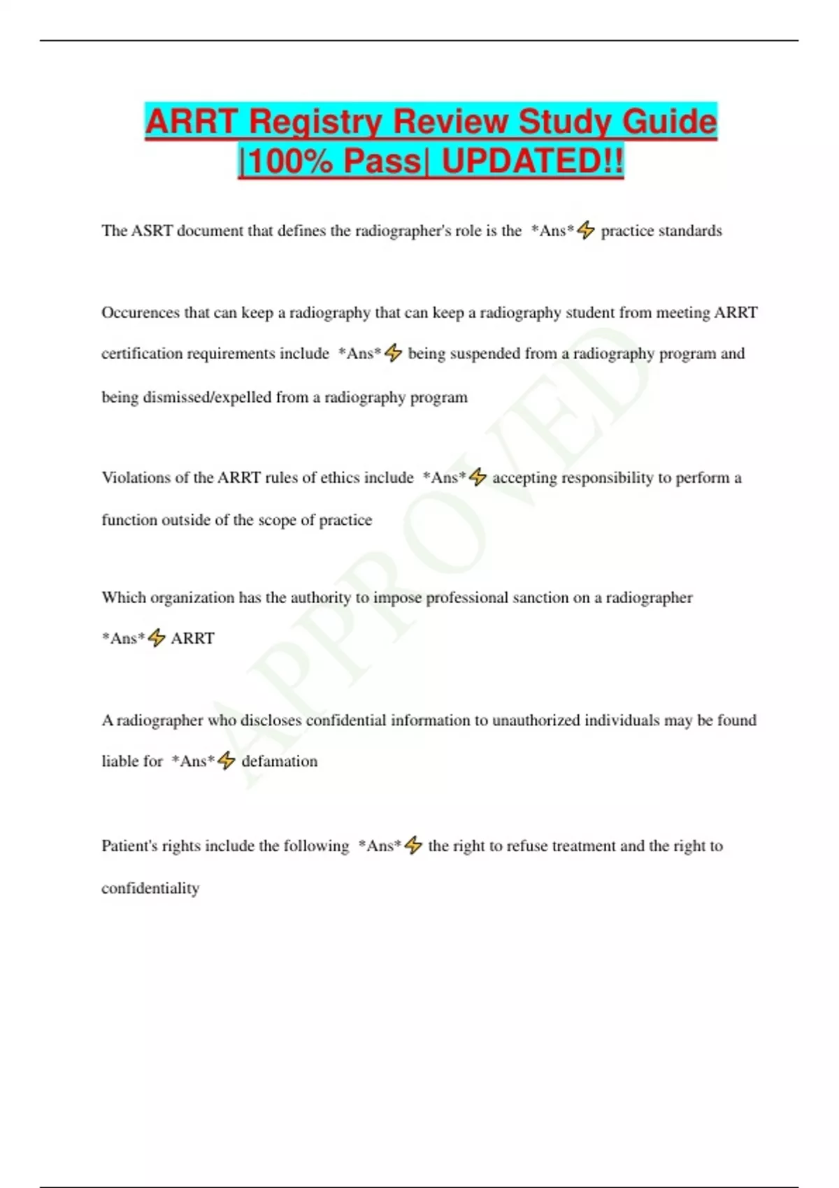 ARRT Registry Review Study Guide |100% Pass| UPDATED!!
