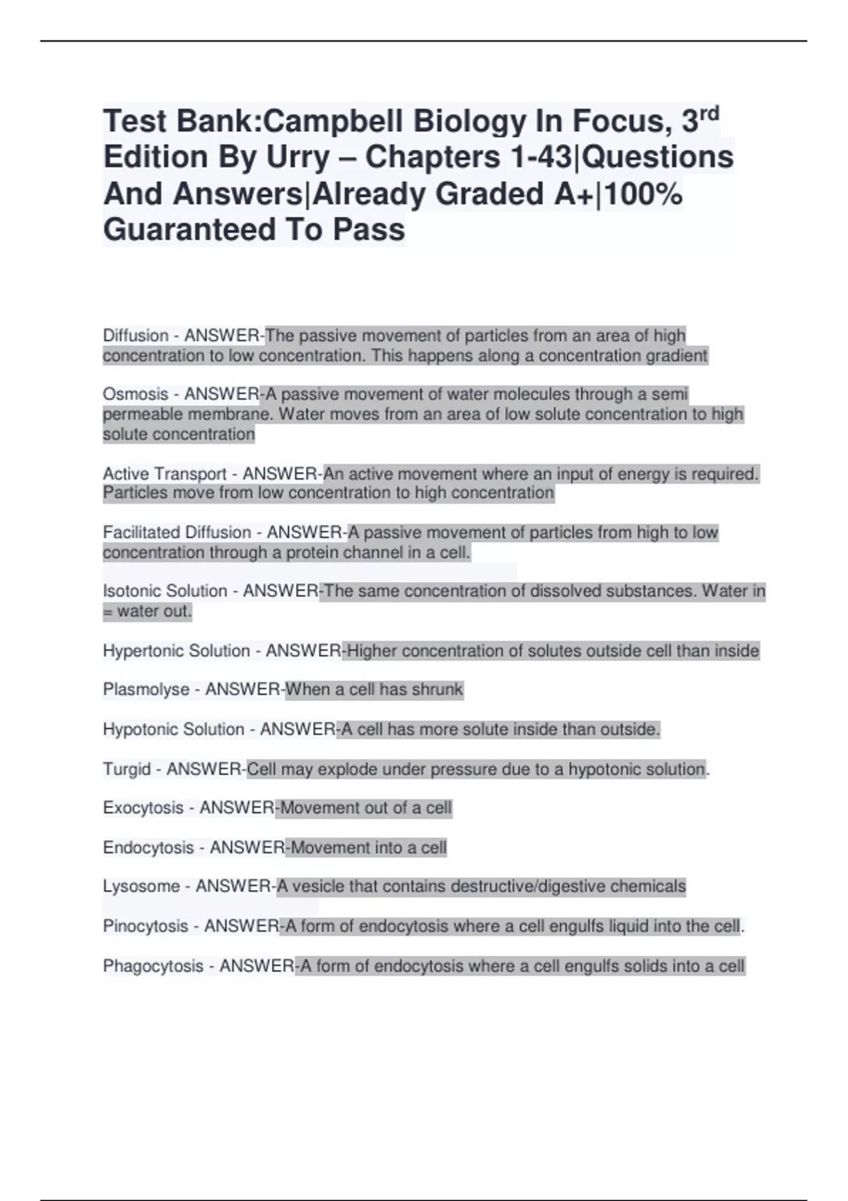Test Bank:Campbell Biology In Focus, 3rd Edition By Urry – Chapters 1-43|Questions And Answers|Already Graded A+|100% Guaranteed To Pass