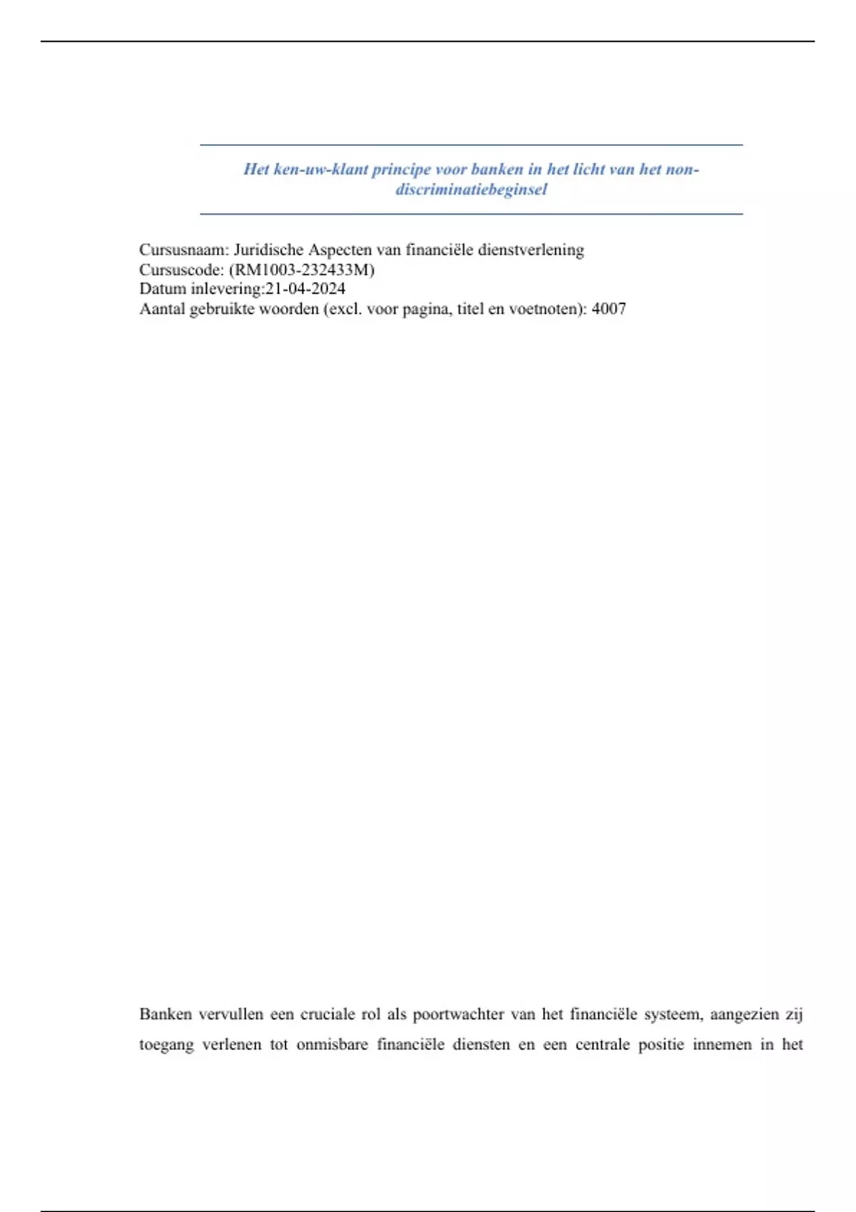 Cursusnaam: Juridische Aspecten van financiële dienstverlening