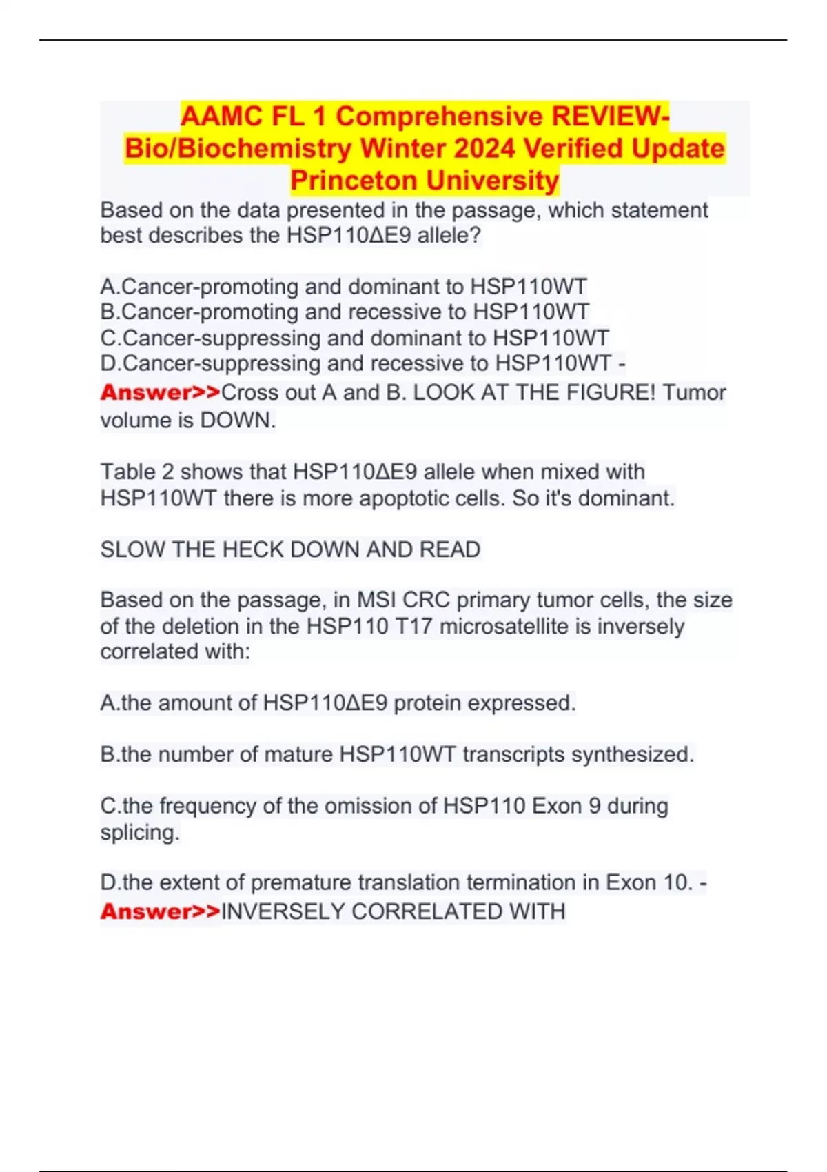 AAMC FL 1 Comprehensive REVIEW- Bio/Biochemistry Winter 2024 Verified Update Princeton University