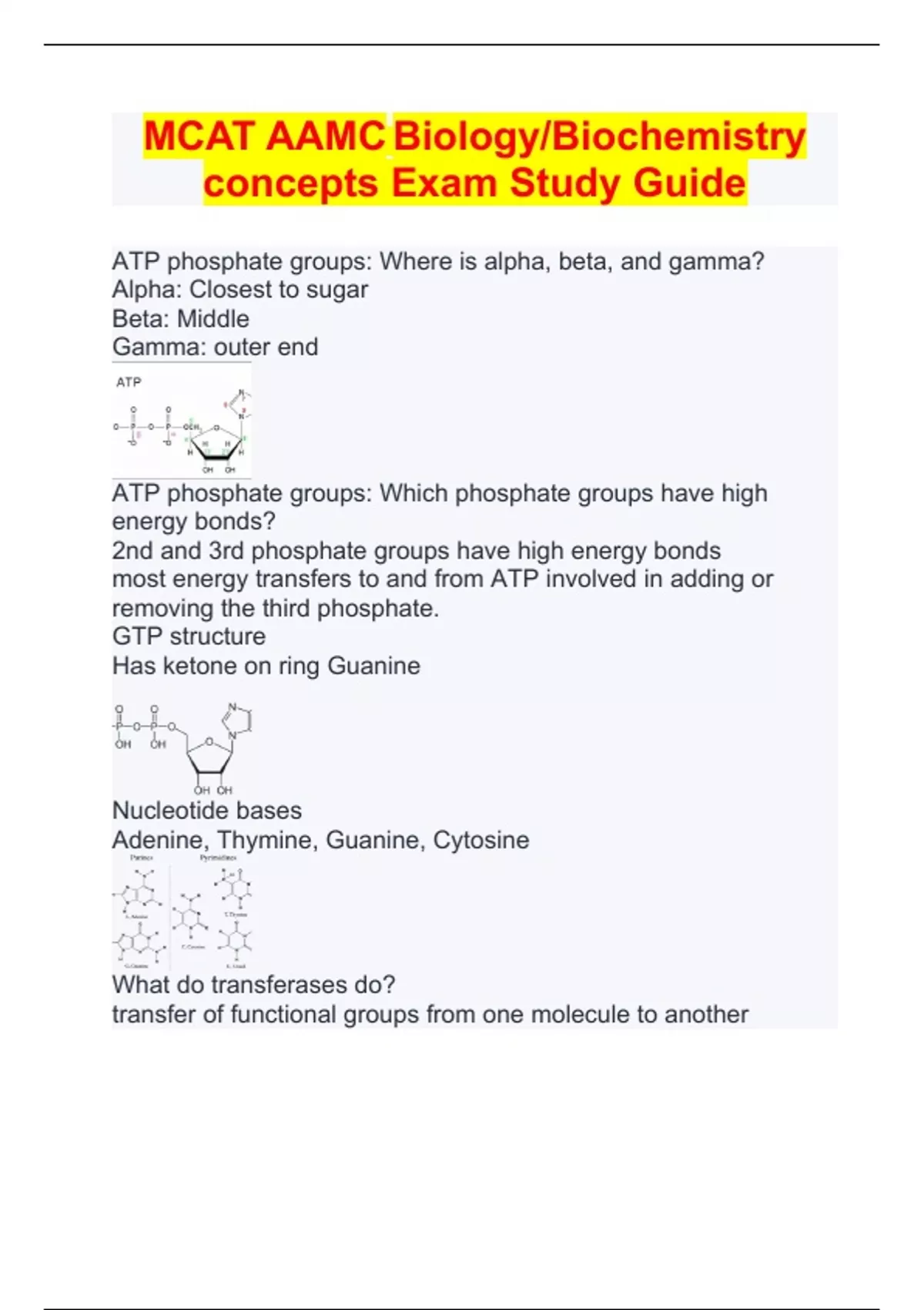 MCAT AAMC Biology/Biochemistry concepts Exam Study Guide