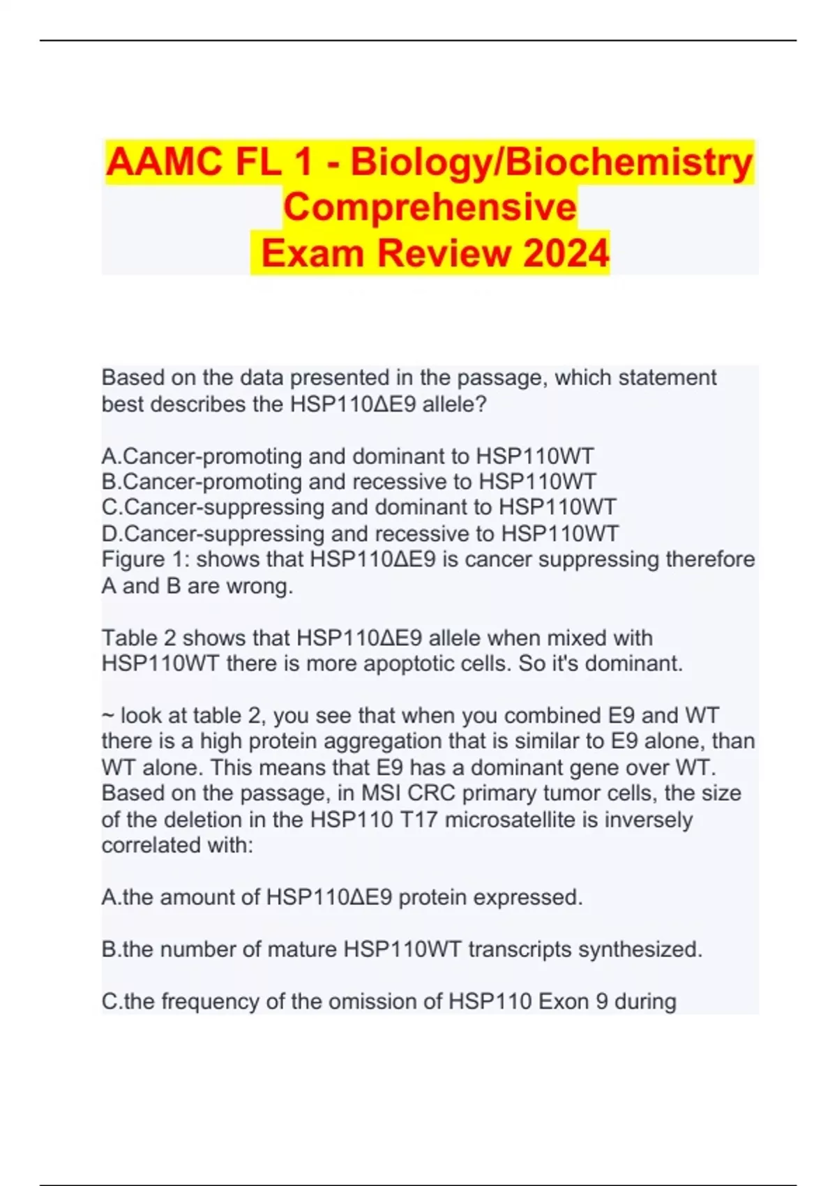 AAMC FL 1 - Biology/Biochemistry Comprehensive Exam Review 2024