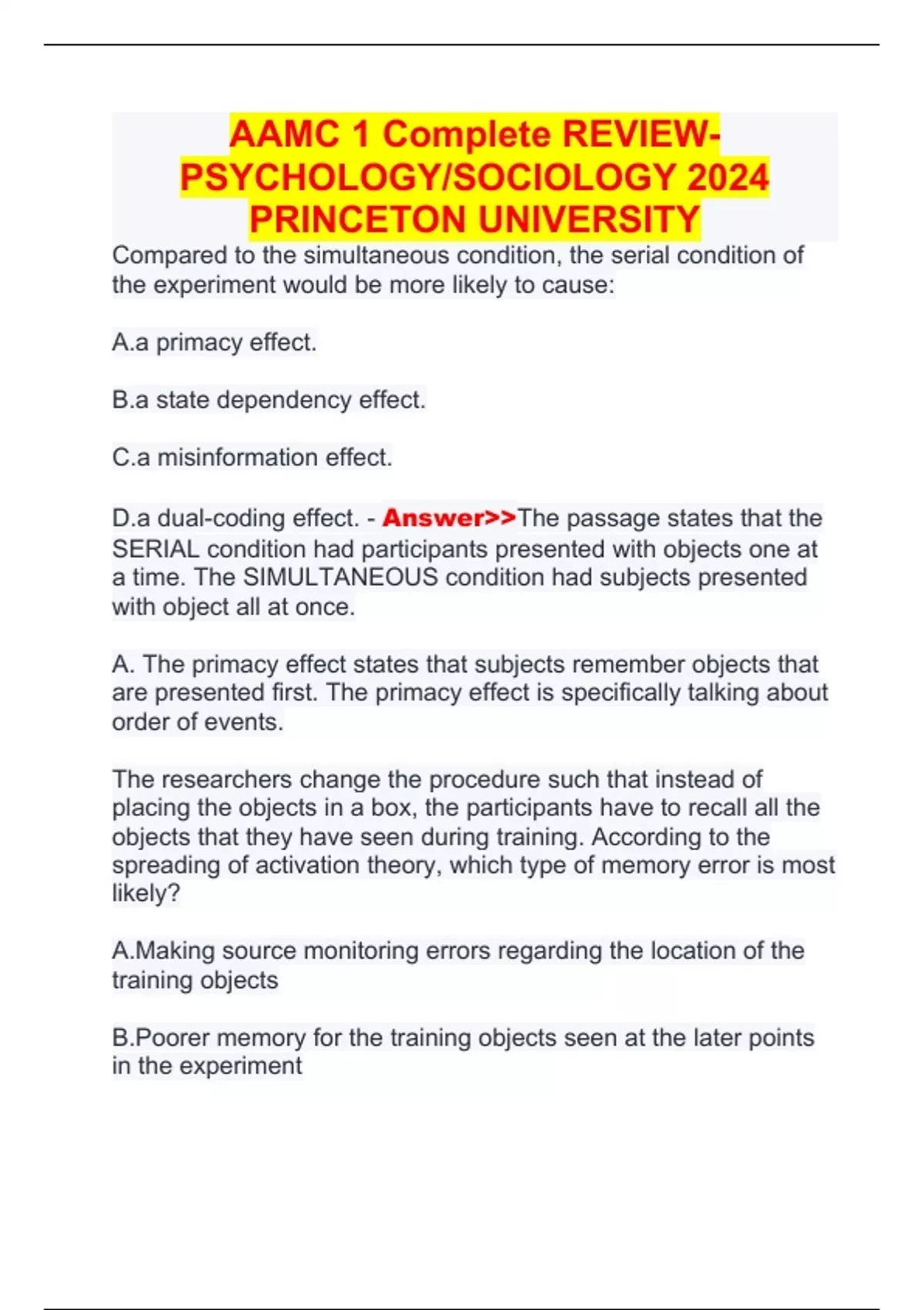AAMC 1 Complete REVIEW- PSYCHOLOGY/SOCIOLOGY 2024 PRINCETON UNIVERSITY