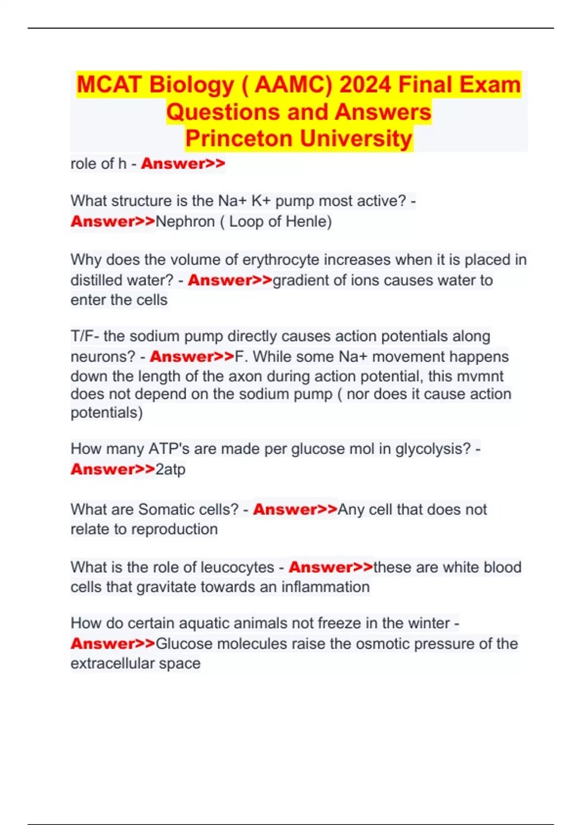 MCAT Biology ( AAMC) 2024 Final Exam Questions and Answers Princeton University