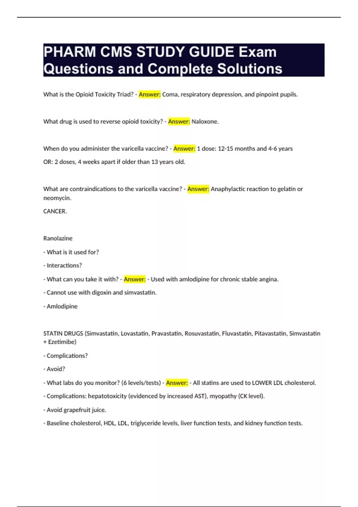 PHARM CMS STUDY GUIDE Exam Questions and Complete Solutions